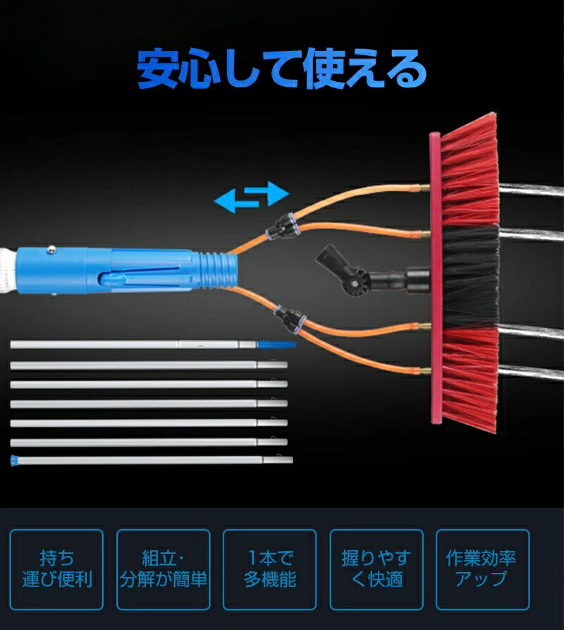 外壁掃除ブラシ 高所掃除 給水伸縮ブラシ 窓掃除 窓拭き 窓ガラス/壁掃除 高所ワイパー 長さ3m~12m選択可能 高強度 外壁掃除 業務用 軽量 取り外しが簡単 伸びるロングモップ 超ロングポール 浄セット機器 窓/天井/鏡/壁など掃除用