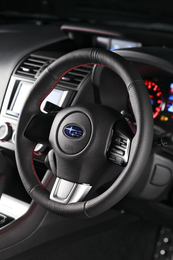 SUBARU WRX STI / S4 VAB, VAG 用 ダムド スポーツ ステアリング ホイール (ブラックレザー×レッドステッチ) 品番: SS360-RS (DAMD SPORT STEERING WHEEL 正規品) ※送料無料 (沖縄県その他離島は別途送料) 純正交換タイプ ハンドル 車検対応 360mm真円デザイン