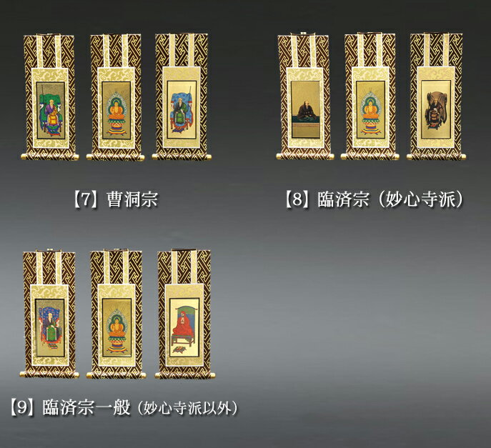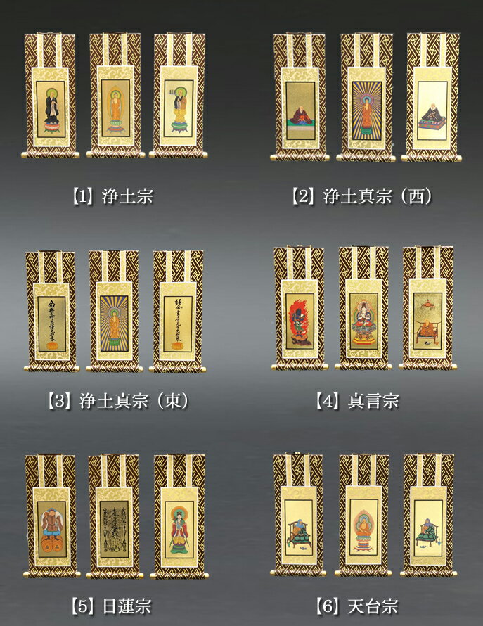 仏具 掛軸 みやび(茶表装・紺表装)20代 3枚セット(浄土宗 浄土真宗 日蓮宗 天台宗 真言宗 臨済宗 曹洞宗 法事 モダン 祭壇 現代仏壇 ミニ仏具 京仏壇はやし 仏壇用品 掛け軸 ミニ お供え 仏壇仏具 仏画 仏壇掛け軸 法要 モダン 仏具セット)