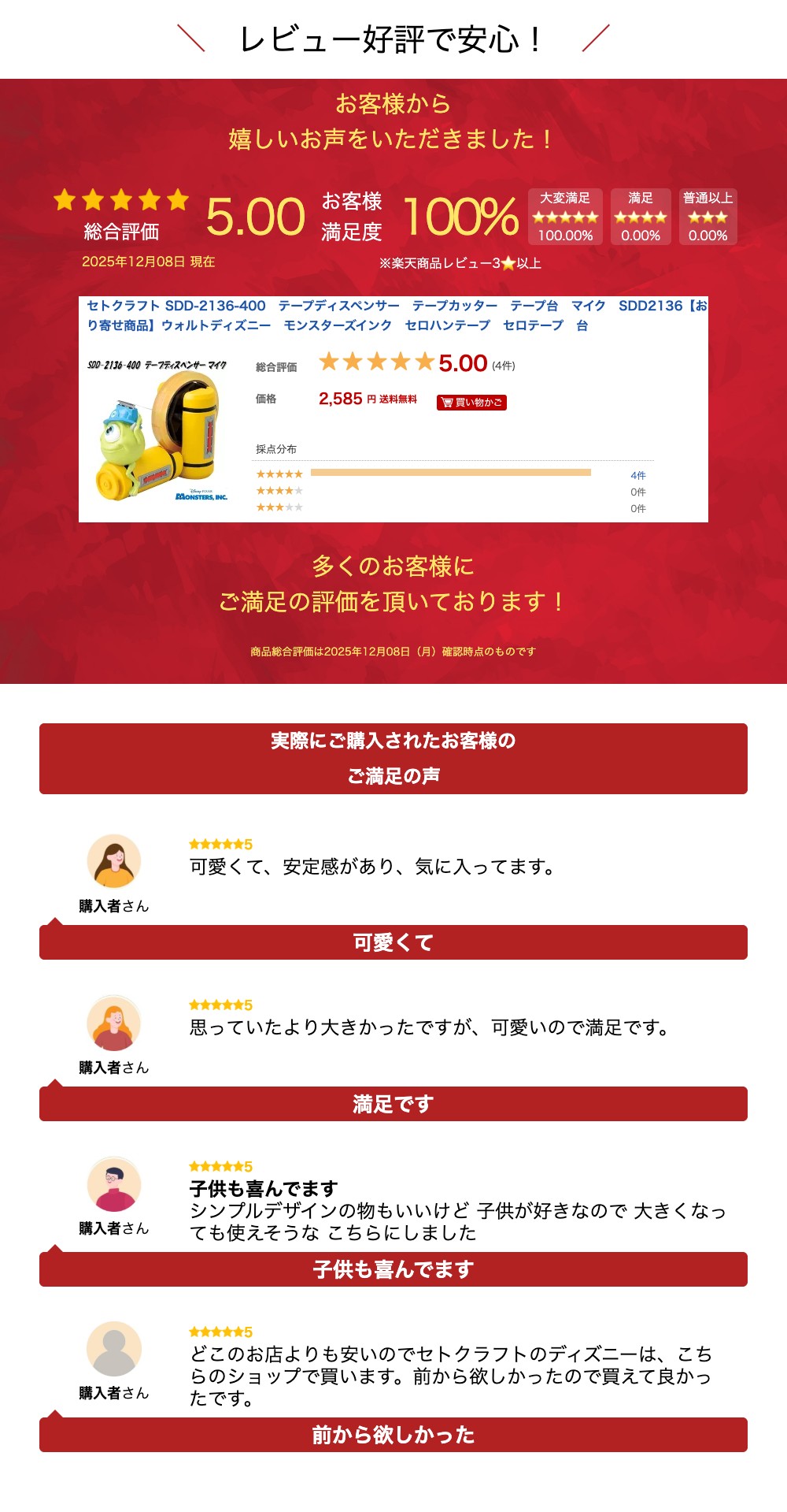 ◇ウォルトディズニーで大人気のPIXAR映画から飛び出してきたモンスターズインクのキャラクターグッズ!! ◇マイクがかわいらしいテープ台です♪ ◇オフィスや学校で目立ちます。 ◇お友達への誕生日プレゼントにも最適!! ※テープは付属していません。 【製品詳細】 ●商品サイズ(cm):幅7.4×奥行15.1×高さ10.3 (プーリー含まず) ●材質:レジン、プーリー部(ABS樹脂) ●重量: ●生産国:中国 ※こちらの商品はお取り寄せ商品となります。 ※製造メーカーにて欠品や完売の場合は、誠に勝手ながら長期でお待ち頂くか、キャンセルをさせて頂く場合が御座いますのであらかじめご了承下さい。 ※沖縄・離島へのお届けは別途送料を申し受けます。詳しくはお尋ねください。 【ウォルトディズニー モンスターズインク キャラクターグッズ】 セトクラフト SDD-2131-140 シャープナー えんぴつ削り サリー SDD2131 セトクラフト SDD-2132-140 シャープナー えんぴつ削り マイク SDD2132 セトクラフト SDD-2133-170 ステープラー ホチキス ホッチキス サリー SDD2133 セトクラフト SDD-2134-170 ステープラー ホチキス ホッチキス マイク SDD2134 セトクラフト SDD-2135-390 スマホスタンド サリー&マイク SDD2135 セトクラフト SDD-2136-400 テープディスペンサー テープカッター テープ台 マイク SDD2136 セトクラフト SDD-2137-240 メガネスタンドケース サリー SDD2137 セトクラフト SDD-2138-240 メガネスタンドケース マイク SDD2138 ※他の文具をお探しの方はこちらをクリックして下さい。 ※他のスマホスタンドをお探しの方はこちらをクリックして下さい。 ※他のテープディスペンサーをお探しの方はこちらをクリックして下さい。 ※他のメガネ・サングラスケースをお探しの方はこちらをクリックして下さい。 ※他のキャラクターグッズをお探しの方はこちらをクリックして下さい。 ※他のウォルトディズニーグッズをお探しの方はこちらをクリックして下さい。 ※他のモンスターズインクグッズをお探しの方はこちらをクリックして下さい。 キーワード ウォルトディズニー DISNEY PIXAR モンスターズ・インク モンスターズインク MONSTERS INC アニメ セトクラフト SETO CRAFT 誕生日 プレゼント 新築祝い 引越し祝い ギフト 関連商品セトクラフト SDD-2116-380 テープディスペンサー クラシッ...セトクラフト D24-0125 テープディスペンサー テープカッター ...セトクラフト D23-0116 テープディスペンサー テープカッター ...2,456円3,360円3,190円セトクラフト D23-0117 テープディスペンサー テープカッター ...セトクラフト SR-6411-280 テープディスペンサー ゴリラ S...セトクラフト SR-6412-280 テープディスペンサー クマ SR...3,190円1,809円1,809円セトクラフト R23-0952 回し車テープディスペンサー ハシビロコ...セトクラフト SDD-2135-390 スマホスタンド サリー&マイク...セトクラフト SR-3058-140 アニマルテープディスペンサーミニ...1,809円2,521円1,034円