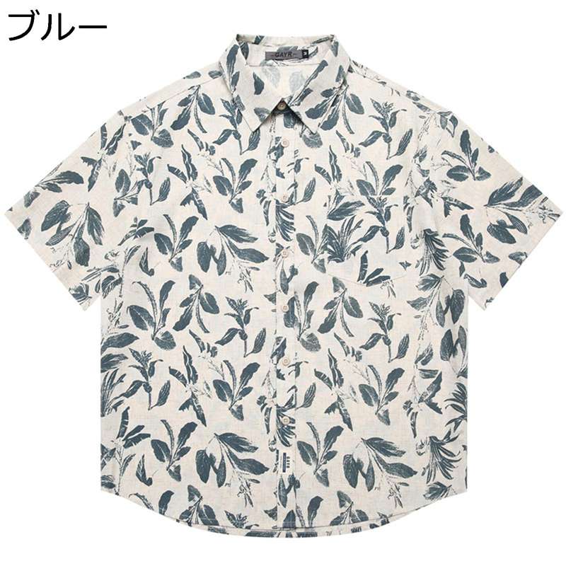 メンズ アロハシャツ リネン 春夏 ビーチシャツ 半袖 開襟 ボタンダウン 総柄シャツ ゆったり 通気性 透湿 uvカット 薄手 軽量 かっこいい 夏祭り 花火大会 ルームウェア 旅行 オーバーサイズ