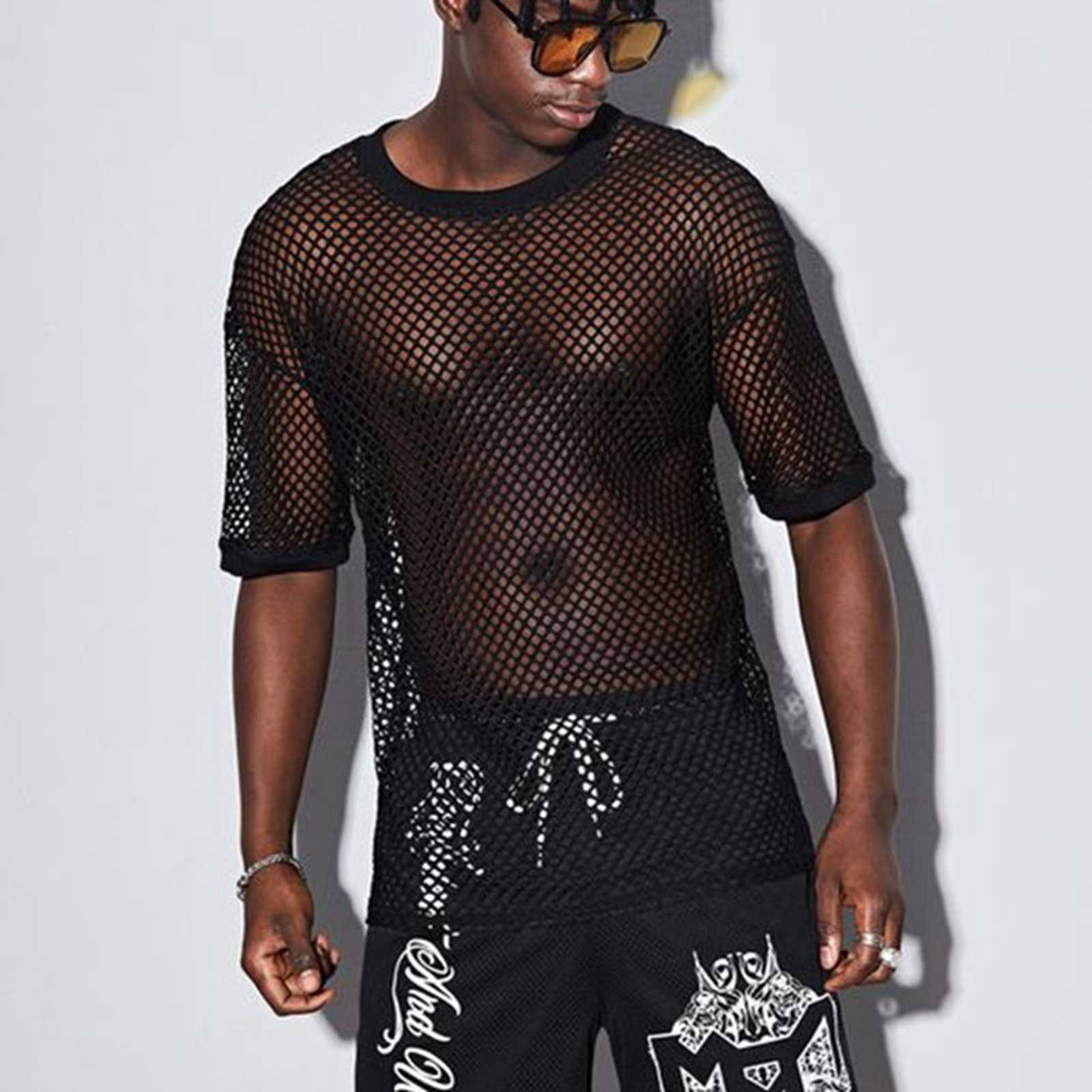 半袖シャツ メンズ Tシャツ メッシュ 透ける 透かし彫り ビーチウェア スポーツウェア カジュアルシャツ 夜店 ホスト系 大胆 過激 セクシー ダンス トレンド ファッション 韓国風 春着 秋服 体型カバー