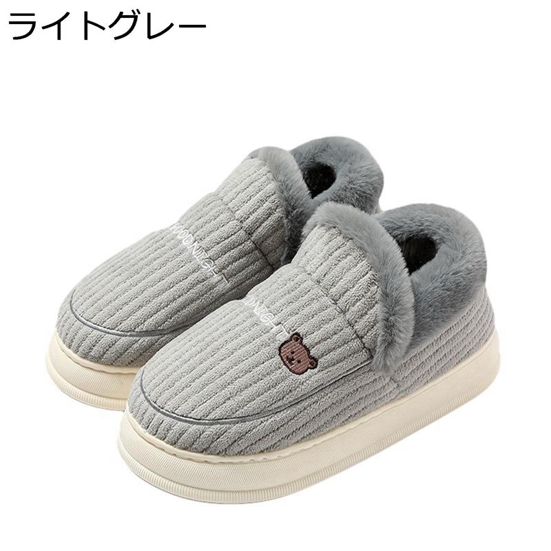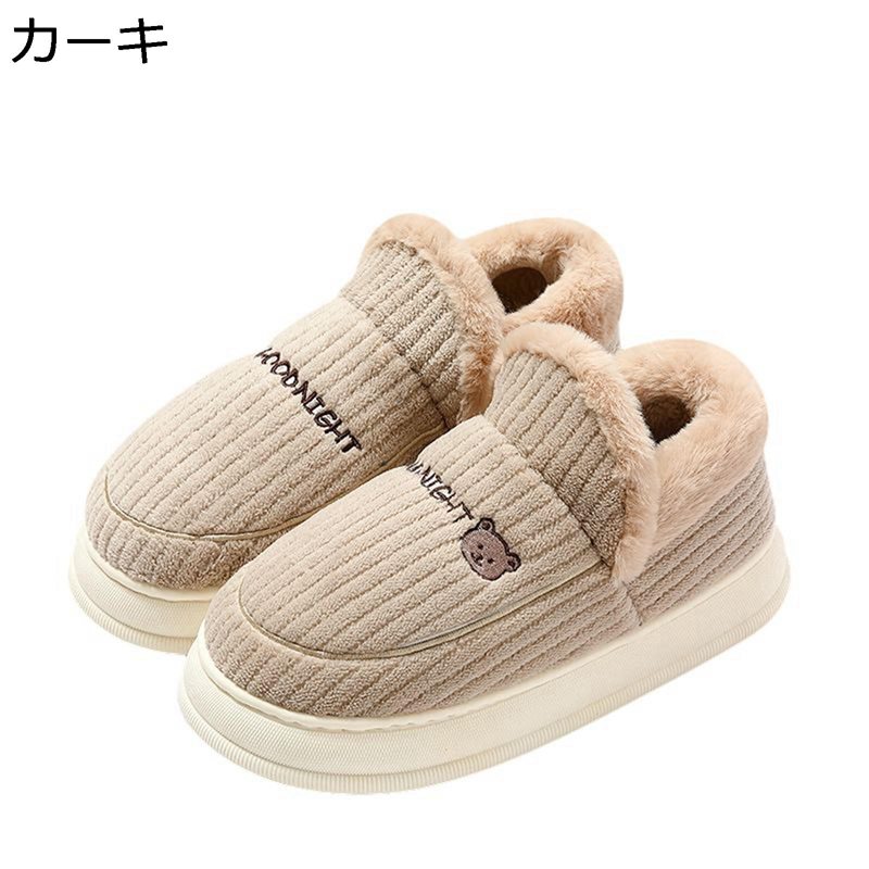 スノーブーツ レディース ルームシューズ 綿靴 可愛い レター クマ柄 刺繍 秋冬 厚底 裏ボア モコモコ 保温 暖かい 防寒 滑り止め 静音 軽量 室内 アウトドア
