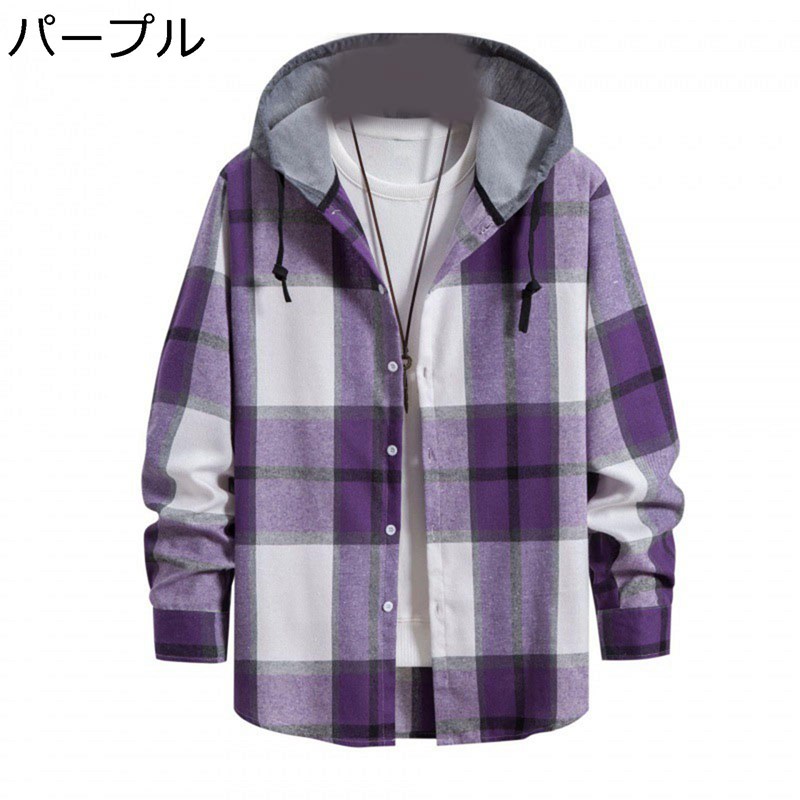 カジュアルシャツ メンズ チェック 長袖 秋服 フード付き ネル シャツ ボタンダウン 襟付き ビックシルエット 薄手 サラサラ レギュラーフィット 汗染み防止 モード系 ストリート クール