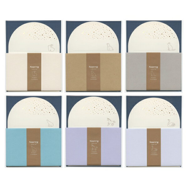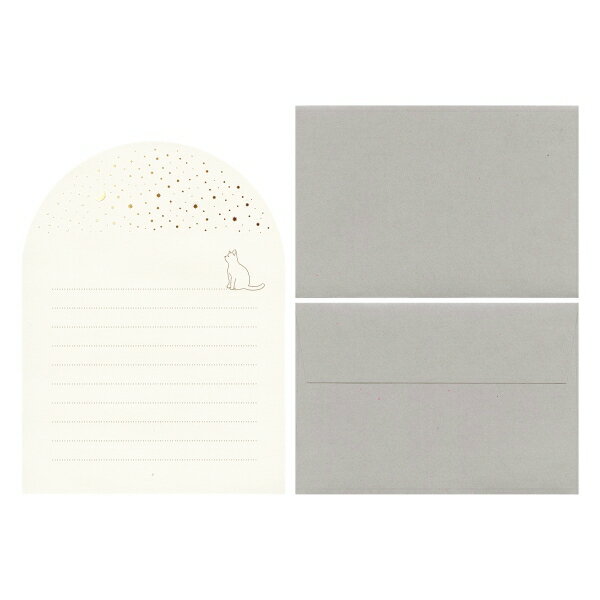 ドーム型の便箋に金の箔押しをあしらい、沢山の星が輝く空を表現したレターセットです。星座にも登場する6種類の動物たちが、自分の星座を探しているように空を見つめるデザインです。封筒はカラフルなチリが入った風合いのある紙を使用。天体や星好きな人への贈り物にもぴったりなレターセットです。内容・便箋:6枚・封筒:3枚(定型内)原産国:日本サイズ:縦=180mm 横=140mm 厚さ=3mm商品色傾向:グレー イラスト表紙パターン:ネコ商品番号167333商品名Starry/スターリー レターセット【Cat】JAN4582529540275メーカーエル・コミューンメーカー品番LTS-097色違い・柄違いの商品⇒ 色違い・柄違いの商品をすべて確認する【エルコミューン】Starry/スターリー レターセットを確認する600000025213: 200000004907: