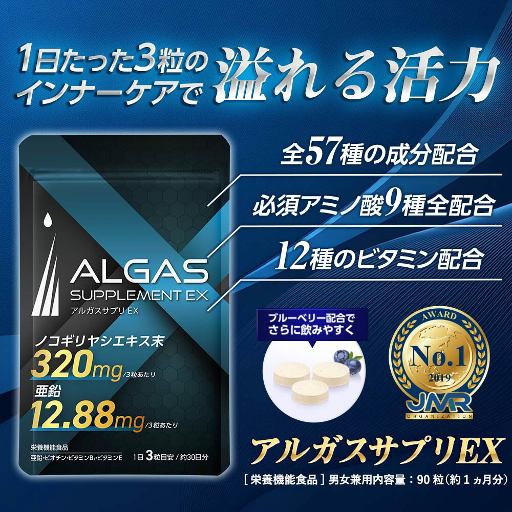 【スーパーSALE限定!30%OFF】アルガスサプリEX ALGAS サプリ サプリメント 栄養機能食品 90粒 1ヵ月分 ノコギリヤシ 亜鉛 ビオチン 必須アミノ酸 ヘアケア 男女兼用 予防 産後 頭髪ケア 毛髪 メンズ レディース 送料無料 国内生産