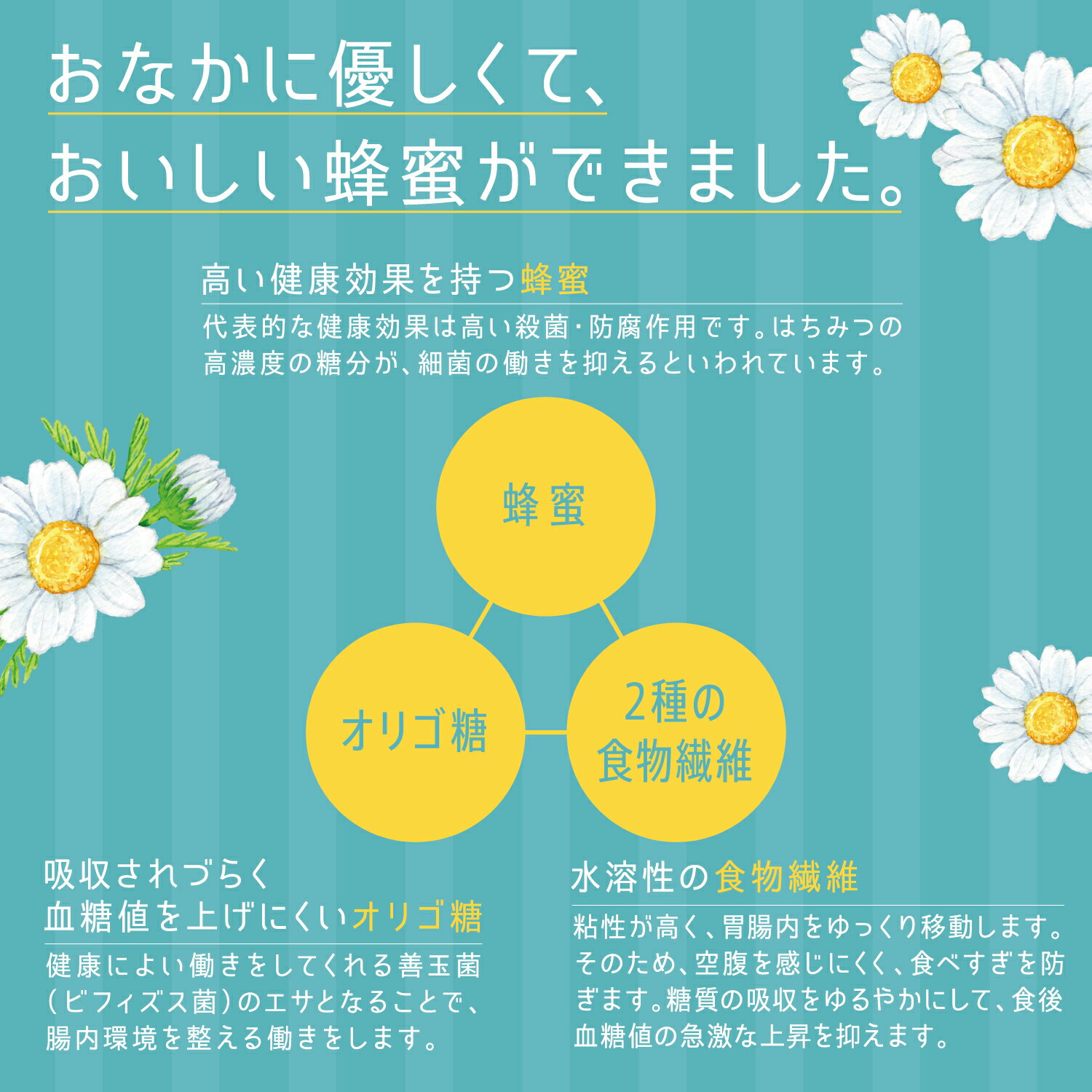 【商品名】 ケフィアやヨーグルトによく合う 食物繊維とオリゴの蜂蜜 【商品特徴】 蜂蜜に、腸活にぴったりの成分である食物繊維とオリゴ糖を加えました。食物繊維は、日本人に不足しやすい水溶性のものを2種類配合。おなかにやさしい蜂蜜です。 【賞味期限】 商品パッケージ裏面、下部に表示。
