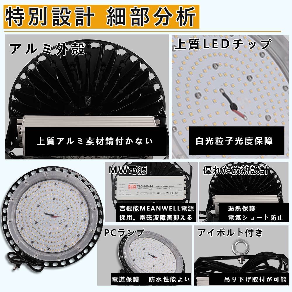 UFO型 led高天井照明 LED投光器 100W 高輝度 20000lm 円盤型 高天井用照明器具 投光器 工場用LED 高天井灯 ハイベイライト 1000W相当 吊下げタイプ 水銀灯代替品 LED化 IP65防水防塵 屋内屋外 ワークライト LED作業灯 高天井/駐車場/倉庫/工場など照明 送料無料