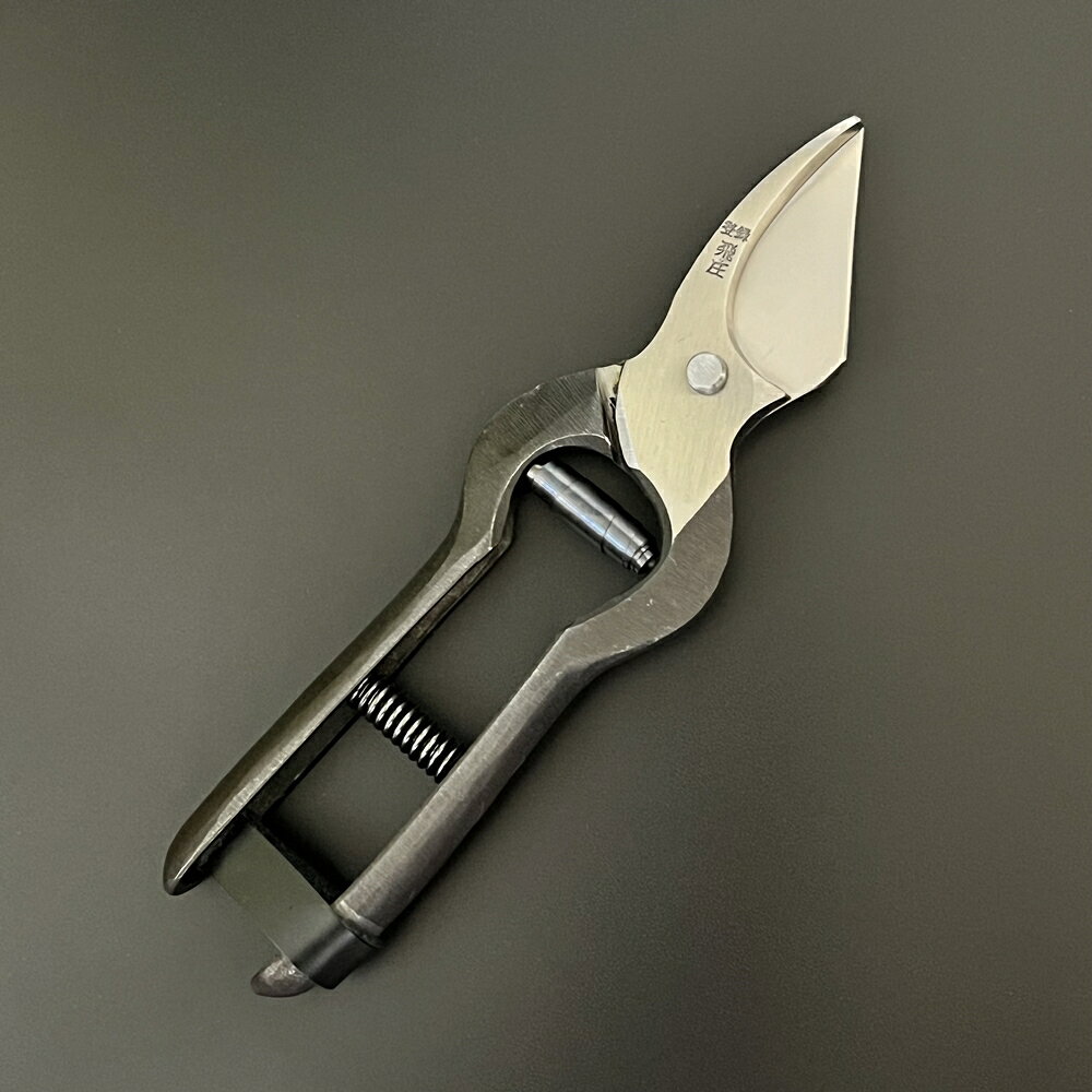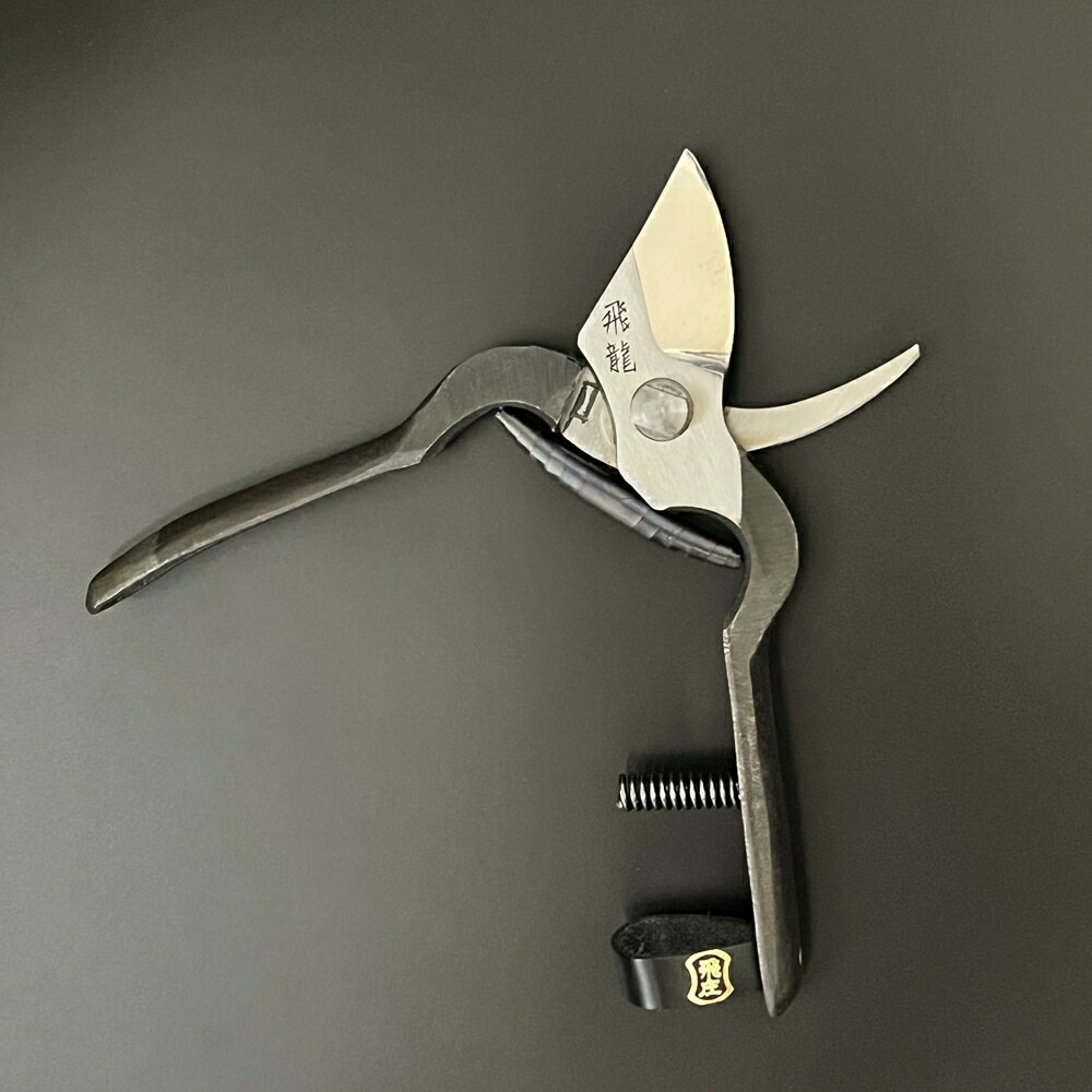 飛庄 剪定鋏 剪定 飛龍型 鍛造 195mm 皮止め 高級 日本製 剪定ばさみ とびしょう PS-09 剪定作業をより効率的かつ正確に行える優れた道具です。厳選された材料で作られた195mmの刃は、優れた切れ味と耐久性を持ち、長時間の使用にも耐えます。 この剪定鋏は「最高の切れ味」を追求した本職用の剪定ばさみで、切り刃と受け刃が交差しない形状が特徴です。この形状は、枝を切る過程で 切り刃が受け刃に向かって斜めに切り進んで行くため切り残しがなく綺麗に枝を切断することができます。刃を薄く仕上げているので摩擦を少なくし剪定時の負担を軽くする工夫がされております。切り抜け時の衝撃が緩和されるようクッションバネを使用し 長時間かつ剪定数の多い作業に特に向いております。■飛龍型 剪定鋏■皮止め■サイズ:195mm■重量:235g*陸奥山形にはすぐれた打刃物が作られています。厳選された鋼を用いて伝統の鍛造手仕上げの技術を生かし、抜群の切れ味と耐久性を実現しています。またその性能は科学的にも証明されており、ご使用されている方々にご好評を博しております。この一品造りの製品をできるだけ多くの人に使っていただきたく、お売りしたいと存じております。 5