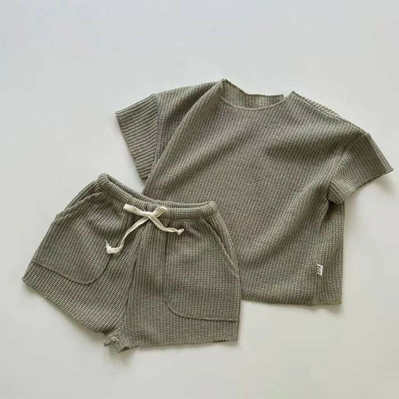 半袖 ニット ショートパンツ セットアップ 2点セット Tシャツ カジュアル ベビー服 子供服 73cm/80cm/90cm/100cm/110cm/120cm
