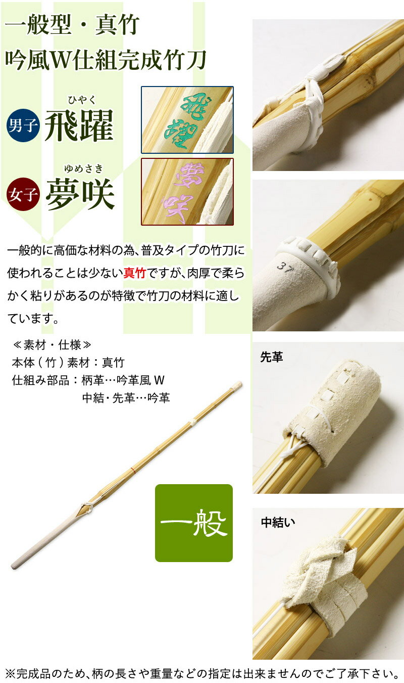 剣道 竹刀 仕組完成品 真竹吟風W仕組み完成竹刀 飛躍・夢咲 <SSPシール付>37〜38サイズ (中学生・高校生)