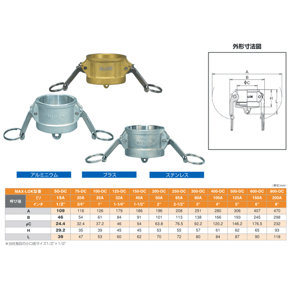 レバーカップリング 1インチ 25A MAX-DC ダストキャップ ステンレス製 マックスロック カムロック