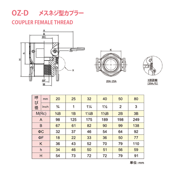 小澤物産 3インチ 80A OZCレバーカップリング メスネジ型カプラー(メス×メスネジ) OZ-D ポリプロピレン製 カムロック