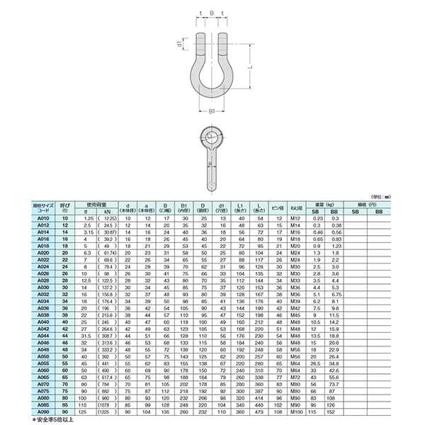 ■特長 ●超強力シャックルは構造用合金鋼を素材として注意深く鍛造され、熱処理(焼入・焼戻)を施行された高品質の製品です。 ●強度、耐摩耗に優れておりますので安全性も抜群です。 ■仕様 ●呼び:12t ●使用荷重 :2.5tf ●本体径:14mm ●口幅:20mm ●内径:35mm ●頭径:32mm ●穴径:16mm ●長さ:63mm ●ピン径 :15mm ●ねじ径 :M14 ●重量:0.38kg ●メーカー:コンドーテック 【使用上の注意】 ※使用荷重以下でご使用ください。 ※シャックルとシャックルを継ぐときは、クラウン(本体R部)で継いで下さい。 ※シャックルは、荷重が縦方向に加わるようにして使用してください。 ※シャックルの取付けは、常にボルト側を静索(ワイヤロープが動かない側)にしてください。 ※シャックルに取付けるワイヤロープは、必ず重ならないようにしてください。