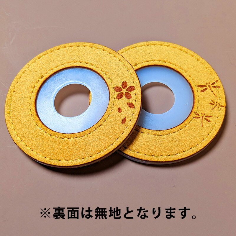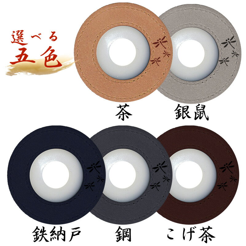 剣道 竹刀 鍔止め つば止め 鹿革風茶革鍔止め (ウルトラスエード) Lサイズ(36〜39サイズ対応) ⇒ 文字入れ希望の方はこちらから! 「入れやすい」「ずれにくい」「取り外ししやすい」と機能的な鍔止め。 しなやかなウルトラスエード素材で片面に「トンボ」または「小桜」のレーザー彫がワンポイントで入ります。 ・生地:ウルトラスエード Ultrasuedeは、極細繊維を発明した東レが最先端の繊維技術を駆使してお届けする 高感度・高機能スエード調人工皮革です。 ・色:5色(茶・銀鼠・鋼・鉄納戸・こげ茶) ・外径:約7cm ・ゴム部分口径サイズ:約20mm ・適合竹刀:36-39サイズ ※柄太の竹刀など一部適合しない場合もございます。