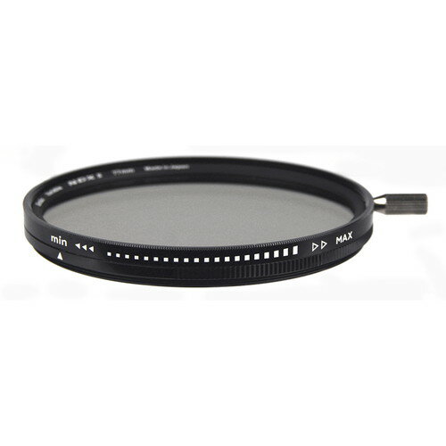 新開発の偏光膜により忠実な色再現を実現、さらに進化した究極の可変式NDフィルター「バリアブルNDX II」 バリアブルNDX IIは、前枠を回転することで減光量を調整できる可変式NDフィルターです(ND2.5〜ND450相当※1)。 一眼動画撮影で露出オーバーを防ぐのに欠かせないフィルターで、静止画でのスローシャッター撮影にもお使いいただけます。 2011年に発売した「バリアブルNDX」は可変式NDフィルターの中でトップクラスの性能の製品ですが、「バリアブルNDXII」はそれをさらに進化させました。新開発の偏光膜採用により色のニュートラル性をアップし、新たに着脱可能なレバーを採用しました。また回転枠の可動範囲を90°とすることで操作性を高めました。そして性能アップしながらも、価格は従来品よりお求めやすい価格に設定いたしました。 ※1 濃度をMAXに近づけた時に映像にX状のムラを生じることがあります。使用するレンズの焦点距離が短いほどこの現象は起こりやすくなります。 ※画像はイメージです。 色カブリせずに減光できる。 可変式NDフィルターはPLフィルターを2枚重ねたような構造により濃度を変える仕組みのフィルターです。 従来のバリアブルNDXはフィルター無しと比べるとわずかに黄色みがかっていました。「バリアブルNDXII」は新開発の偏光膜採用によりニュートラルな色味を実現した究極の可変式NDフィルターです。 可動範囲90°、着脱可能なレバー付き。 動画撮影で便利なレバーが付属します。また回転枠の可動範囲を濃度の最小(min)から最大(MAX)までの90°とすることでスムーズな撮影を可能にしました。 レバーは必要に応じて着脱できます。レバーをつける位置を2か所設けており、ご自身の操作しやすい位置にセットできます。レバーは予備を含め2つ付属します。 可変式NDフィルターのメリット(撮影時の手間を解消) 通常のNDフィルターは撮影シーンに応じてND4やND8などをつけかえる必要があります。可変式NDフィルターは前枠を回転させるだけで、自在に減光量を調整することができます。また濃いNDフィルターを使う場合、構図決定やピント合わせのたびにフィルターの付け外しを行う必要がありました。 しかし可変式NDフィルターは最も明るい状態で構図決定・ピント合わせをし、そのまま前枠を回転させて任意の濃度にセットできるので、フィルターの付け外しの手間がありません。 偏光効果を起こさない設計 バリアブルNDXIIは独自の設計により、ND濃度を変えた時の色調のズレを極力抑えています。 PLフィルターを2枚重ねてセットすると減光効果を得られることは以前から知られています。この仕組み上、通常のNDと比べて解像度の低下や色味の変化が発生し、市販されている可変式NDフィルターでは解像力が低下したり色ムラが発生するものがあります。 しかしケンコーのバリアブルNDXIIは、同様の原理を応用しながらも独自の設計により色調のズレを極力おさえています。また偏光膜を使用しながらもPLフィルターのような反射除去効果はなく、減光効果のみ得ることができます。 【使用例】 【使用上のご注意】 ◆ND効果をMAXに近づけた時に映像にX状のムラを生じたり、青みがかったりする場合がありますので、濃度調整にはご注意ください。焦点距離が短いほどムラは出やすくなります。「使用可能な濃度範囲の目安」をご確認ください。 ◆正しい明るさに表現するために露出補正が必要な場合があります。 ◆枠の表記は目安です。構造上min及びMAXの位置とフィルター効果にわずかな誤差を生じることがあります。またminとMAXの中間にある点は絞り段数を表すものではございません。減光量はカメラに表示される露出の値をご確認ください。可変式NDフィルターはmin側の減光量の変化は緩やかで、MAX付近で急激に減光量が落ちます。 ◆一眼レフでスローシャッター撮影する場合、ファインダーからの逆入射光の影響が生じます。アイピースシャッターなどによりファインダーの遮光を行なってください。 ◆本製品には偏光膜を採用しています。偏光膜は熱および紫外線により劣化する性質があります。7年程度をめどに買い換えをお勧めいたします。 ◆ガラス4枚を使用する構造上、通常のフィルター枠より厚い枠となっております。目安として28mm以下の焦点距離ではケラレが発生する場合がございます。 ◆偏光膜を使用していますが、PLフィルターの効果はありません。 ◆太陽撮影には適していません。 ◆フィルターサイズは77mmと82mmの2サイズのみです。その他サイズのレンズでは、ステップアップリングを併用してください。 【ラインナップ】 フィルター径JANコード希望小売価格(税別) 77mm 4961607773048 ¥40,000 82mm 4961607823040 ¥44,000