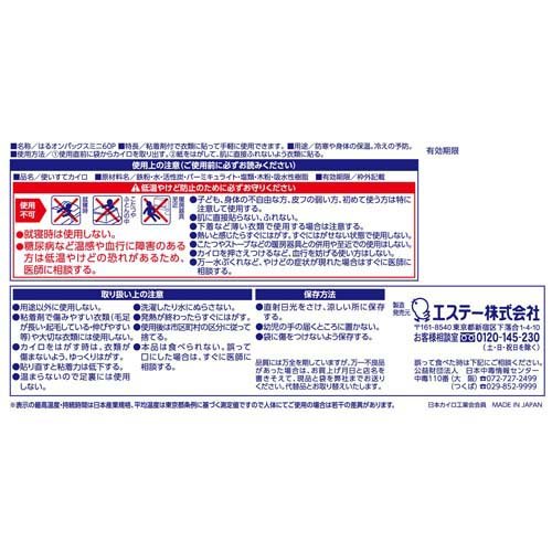 お店TOP>衛生医療>温熱用具>カイロ>カイロ>はるオンパックス カイロ 貼る ミニサイズ 日本製 10時間持続 (60個入×3セット)【はるオンパックス カイロ 貼る ミニサイズ 日本製 10時間持続の商品詳細】●最後まで安定した温かさ:長時間安定した温度が持続する、貼るタイプのカイロです。●衣類に貼るカイロ:防寒、からだの保温、屋外でのスポーツ観戦レジャーにお使いください。●からだにぴったりフィット:薄く、中身が均一で片寄りません。●用途:使いすてカイロ 貼るタイプ●スペック:最高温度:63度、平均温度:51度、持続時間:10時間(40度以上を保持し、持続する時間)●サイズ:ミニ(9.5cm*7cm)●もしもの時に。備えて安心。防寒対策に 防災・備蓄にも最適。【使用方法】(1)使用直前に袋からカイロを取り出す。(2)紙をはがして、肌に直接ふれないように衣類に貼る。【規格概要】・原材料:鉄粉、水、活性炭、バーミキュライト、塩類、木粉、吸水性樹脂【注意事項】ご使用前に必ずお読みください。低温やけど防止のために必ずお守りください・就寝時には使用しない。・糖尿病など温感や血行に障がいのある方は低温やけどの恐れがあるため、医師に相談する。・子ども、身体の不自由な方、皮フの弱い方、初めて使う方は特に注意して使用する。・肌に直接貼らない、ふれない。・下着など薄い衣類で使用する場合は注意する。・熱いと感じたらすぐにはがす。すぐにはがせない状態で使用しない。・こたつやストーブなどの暖房器具との併用や至近での使用はしない。・カイロを押さえつけるなど、血行を妨げる使い方はしない。・万一水ぶくれやなど、やけどの症状が現れた場合はすぐに医師に相談する。★保存方法・直射日光をさけ、涼しい所に保存する。・幼児の手の届くところに置かない。・袋に傷をつけないよう保存する。【原産国】日本【ブランド】オンパックス【発売元、製造元、輸入元又は販売元】エステー株式会社※説明文は単品の内容です。リニューアルに伴い、パッケージ・内容等予告なく変更する場合がございます。予めご了承ください。・単品JAN:4902899451061エステー株式会社東京都新宿区下落合1-4-100120-145-230広告文責:楽天グループ株式会社電話:050-5577-5042[温熱用品/ブランド:オンパックス/]