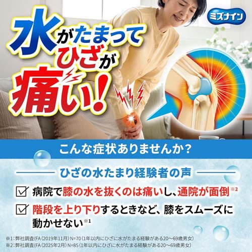 お店TOP>医薬品>痛み止め・鎮痛剤>神経痛・関節痛>神経痛、関節痛の漢方薬 錠剤>ミズナイン (60錠×2セット(セルフメディケーション税制対象))お一人様1セットまで。医薬品に関する注意文言【医薬品の使用期限】使用期限120日以上の商品を販売しております商品区分:第二類医薬品【ミズナインの商品詳細】●7種類の生薬からなる越婢加朮附湯(えっぴかじゅつぶとう)という漢方製剤です。●水がたまった関節のはれや痛みを改善する医薬品です。●持ち運びしやすいパウチタイプです。【販売名】ミズナイン【効能 効果】体力中等度以上で、冷えがあって、むくみがあり、のどが渇き、汗が出て、ときに尿量が減少するものの次の諸症:むくみ、関節のはれや痛み、筋肉痛、湿疹・皮ふ炎、夜尿症、目のかゆみ・痛み【用法 用量】次の量を食前又は食間に水又はお湯で服用してください[年齢:1回量:服用回数]大人(15才以上):4錠:1日3回15才未満:×服用しないこと★用法・用量に関連する注意定められた用法・用量を厳守すること・食間とは「食事と食事の間」を意味し、食後約2〜3時間のことをいいます【成分】1日量(12錠)中越婢加朮附湯エキス:2.6g(マオウ:3.0g、セッコウ:4.0g、ソウジュツ:2.0g、ブシ末:0.5g、ショウキョウ:0.5g、カンゾウ:1.0g、タイソウ:1.5g:より抽出(添加物:無水ケイ酸を含む))添加物として、無水ケイ酸、ケイ酸Al、CMC-Ca、乳糖、ステアリン酸Mgを含有する・本剤は天然物(生薬)を用いているため、錠剤の色が多少異なることがあります【注意事項】★使用上の注意・相談すること1.次の人は服用前に医師、薬剤師又は登録販売者に相談すること(1)医師の治療を受けている人(2)妊婦又は妊娠していると思われる人(3)体の虚弱な人(体力の衰えている人、体の弱い人)(4)胃腸の弱い人(5)のぼせが強く赤ら顔で体力の充実している人(6)発汗傾向の著しい人(7)高齢者(8)今までに薬などにより発疹・発赤、かゆみ等を起こしたことがある人(9)次の症状のある人:むくみ、排尿困難(10)次の診断を受けた人:高血圧、心臓病、腎臓病、甲状腺機能障害2.服用後、次の症状があらわれた場合は副作用の可能性があるので、直ちに服用を中止し、このパウチを持って医師、薬剤師又は登録販売者に相談すること[関係部位:症状]皮ふ:発疹・発赤、かゆみ消化器:吐き気、食欲不振、胃部不快感その他:動悸、のぼせ、ほてり、口唇・舌のしびれまれに下記の重篤な症状が起こることがある。その場合は直ちに医師の診療を受けること[症状の名称:症状]偽アルドステロン症、ミオパチー:手足のだるさ、しびれ、つっぱり感やこわばりに加えて、脱力感、筋肉痛があらわれ、徐々に強くなる3.1ヶ月位服用しても症状がよくならない場合は服用を中止し、このパウチを持って医師、薬剤師又は登録販売者に相談すること4.長期連用する場合には、医師、薬剤師又は登録販売者に相談すること5.本剤の服用により、まれに症状が進行することもあるので、このような場合には、服用を中止し、このパウチを持って医師、薬剤師又は登録販売者に相談すること★保管及び取扱い上の注意(1)直射日光の当たらない湿気の少ない涼しい所にチャックをしっかりしめて保管すること(2)小児の手の届かない所に保管すること(3)他の容器に入れ替えないこと(誤用の原因になったり品質が変わる)(4)本剤をぬれた手で扱わないこと【医薬品販売について】1.医薬品については、ギフトのご注文はお受けできません。2.医薬品の同一商品のご注文は、数量制限をさせていただいております。ご注文いただいた数量が、当社規定の制限を越えた場合には、薬剤師、登録販売者からご使用状況確認の連絡をさせていただきます。予めご了承ください。3.効能・効果、成分内容等をご確認いただくようお願いします。4.ご使用にあたっては、用法・用量を必ず、ご確認ください。5.医薬品のご使用については、商品の箱に記載または箱の中に添付されている「使用上の注意」を必ずお読みください。6.アレルギー体質の方、妊娠中の方等は、かかりつけの医師にご相談の上、ご購入ください。7.医薬品の使用等に関するお問い合わせは、当社薬剤師がお受けいたします。TEL:050-5577-5042email:kenkocom_4@shop.rakuten.co.jp【原産国】日本【発売元、製造元、輸入元又は販売元】小林製薬※説明文は単品の内容です。リニューアルに伴い、パッケージ・内容等予告なく変更する場合がございます。予めご了承ください。・単品JAN:4987072100264広告文責:楽天グループ株式会社電話:050-5577-5042・・・・・・・・・・・・・・[関節痛・肩こり・腰痛・筋肉痛]