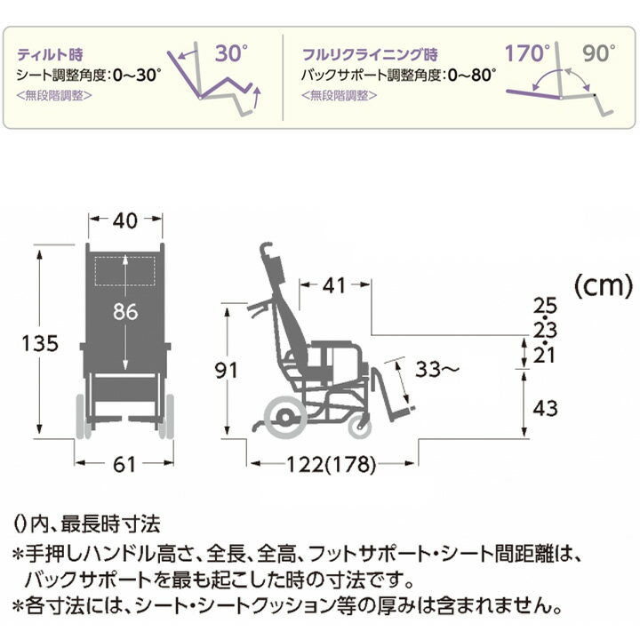 いつでもお買い得!!送料無料の車椅子クッションシートも付いて23,800円お尻も背中も痛くならない24,300円お尻も背中も痛くならない23,300円多機能タイプがお手頃価格”29,980円”で新登場>>>大きめの痛くならない〜すはこちら24,300円>>>新発売 お出かけに最適!!持ち運びに便利なコンパクト車椅子16,900円AYK-40は下肢が当たる部分がベルトタイプ、AYK-40ELはパッドタイプになります。現在のページはベルトタイプです。○フルリクライニング機能とティルティング機能を兼ねそろえた車いす、登場!!○フルリクライニング機構1.背部:最大0〜80°、背もたれ角度:90°〜170°2.簡易ストレッチャーとしてもご使用できます。○ティルティング機構座面部:最大0〜30°、最大角度:90°〜120°○押手角度調整シート可動時やティルト・リクライニング状態での使用の際に、介助される方が操作しやすい角度に調節できます。○納得の充実機能1.左右独立適合調整シート、体幹支持パッド背中の形状に合わせて張り調整ができます。背部への圧迫が少なくなり、体の“横倒れ”を抑えることができます。2.アンカークッション座骨の前ズレを防ぎます。3.肘掛け上下&高さ調整式(3段階)4.足踏みブレーキ5.転倒防止バー(キャスタ付)○エレベーティング&スイングアウト仕様(足ベルトタイプ)○後輪:12インチ エアー○座幅:40cm○背折れ:なし○介助ブレーキ:バンド式○シートベルト:標準装備(面ファスナー式)○フレーム主要部分:アルミ(7000系)○(青)ビニールレザー/(濃紺チェック)ポリエステル仕様表詳細サイズ:幅61.0×奥行122.0×高135.0cm重量:24.0kgフレームカラー:シルバー規格1台
