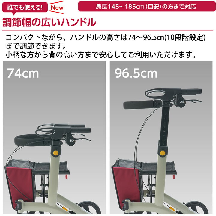 NEW! あると便利なコンパクト車いすの新商品○お買い物かごが載せられる歩行車手元に買い物かごがあるので出し入れ簡単!買い物カゴ受けホルダーを上げると足元広々。○簡易保冷バッグ 大容量11Lスーパーで購入したものを、そのままバッグに入れることができます。※簡易保冷バッグなので、生鮮品を長時間入れたままにはしないでください。○調節幅の広いハンドル車体はコンパクトなまま、ハンドルの高さは74〜96.5cm(10段階)まで調節可能です。小柄な方から背の高い方まで安心してご利用いただけます。身長145〜185cm(目安)の方まで対応。○3WAYキャスターご利用者様の歩行能力や路面の状況に応じて、タイヤの回転を3種類からお選びいただけます。身体の状態の変化に応じて設定しなおすことで、長く愛用していただけます。○持ち上げやすい、楽らくグリップラクラクグリップを持つことで、歩行車の前輪が持ち上がり、段差の乗り越えや方向転換などが容易になります。○コンパクト設計、左右折りたたみ幅48cmと業界最小クラスで取り回しがしやすい。左右折りたたみで、コンパクトになり、自立するため収納に便利です。○座面付き座面付きで、疲れた時など座って一休みもできます。※リトルターンII KM は、座った時に買い物かご保持ベルトにもたれかけることはできません。<材質>座面:ポリエステルバッグ:ナイロンフレーム:アルミニウムハンドルグリップ:エラストマータイヤ:EVA樹脂仕様表サイズ幅50×奥行65×高74〜96.5cm(10段階)重量約7.5kg詳細座面サイズ:幅36×奥行22cm座面高:47cm折りたたみ幅:27cmバッグ容量:11L車輪径:20cm最大使用者体重:100kg規格1台 ケンクル(kenkul)では他にも多くのシルバーカーをご用意しています 軽量で持ち運びに便利お散歩にも最適大きめの袋やかごが付いてお買い物に便利幅が広めでしっかりとした安定感がある体重を支えながら移動できる