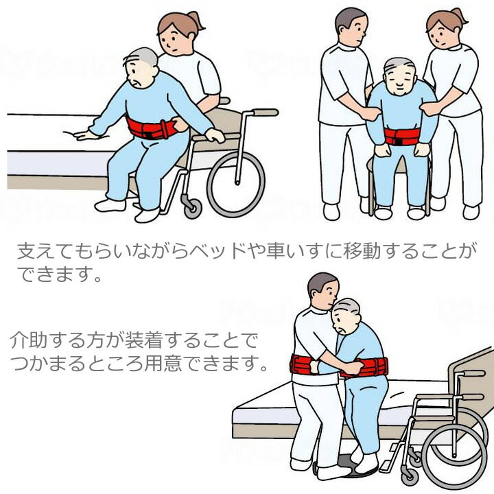身体にしっかりと装着して、立ちあがりや移乗をサポートする介助ベルトです。ウエストに装着して、ハンドルを握って身体を支持します。介助する方も装着することで、介助される方がつかまるところを用意できます。横ハンドルをつかむとスライドして、しっかりとウエストを保持できます。仕様表詳細[Sサイズ] ウエストサイズ:60〜100cm[Mサイズ] ウエストサイズ:70〜120cm[Lサイズ] ウエストサイズ:100〜160cm規格1個