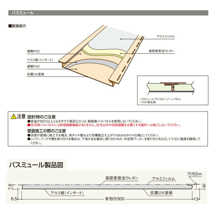 メーカー希望小売価格はメーカーカタログに基づいて掲載しています ※カタログのメーカー小売希望価格は、税抜き価格となっております。 フクビ FUKUVI 浴室用不燃天井・壁装材 バスミュール 3m 8枚入 サイズ 3m 品番 BM-Z BM-W BM-LL 納期目安 目安としてメーカーに在庫がある場合、3営業日程度のお届けとなります。 直送について 商品画像のメーカー直送便の注意事項を必ずご確認くださいませ。この商品は フクビ【バスミュール 3m 8枚入 BM-Z・BM-W・BM-LL】 ポイント 浴室をはじめ、脱衣室などサニタリー全般に使用できるバスパネル。 ショップからのメッセージ 納期について 【メーカー直送のため、納期は受注確定後に連絡】 4