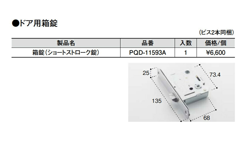 大建工業【ドア用箱錠 (ショートストローク錠) PQD-11593A 1入】DAIKEN ダイケン