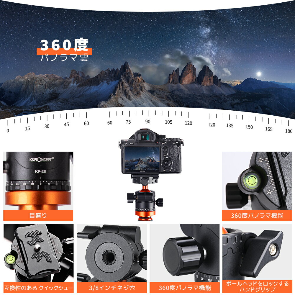 商品詳細 仕様 品番:KF09.093V2 モデル:D255C4+BH-28L 2-in-1 Quick Release Plate kits 色: 黒、オレンジ 折りたたみ可能: √ 一脚として分離可能: √ 中軸横置き可能: X 雲台: BH-28L 雲台重量 (g): 262 耐荷重 (kg): 10 クイックリリースプレート素材: 金属 ロック方式: レバー式ロック ロック部材質:金属 脚の材質: カーボン 脚の段数: 5 センターポール段数: 2 最小管径 (mm): 13 最大管径 (mm): 25 最高高さ (mm): 1720 センターポール未使用時の高さ (mm): 1320 最低高さ (mm): 520 収納時高さ (mm): 420 三脚と雲台の自重 (g): 1325 製品重量 (パッケージ込み) (g): 1926 おすすめポイント 【超軽量&コンパクト】三脚はカーボンが採用られて、アルミ三脚に比べて、カーボン三脚は20~30%の軽量化を実現しています。対腐食性良く、剛性に優れます。5段伸縮可能で、作業高さ52CMから170CMまで調整可能です。不用時に脚を反対側に折り返せてわずか42cmのコンパクトサイズです。さらに、重さも1.3kgだけで、トラベルや野外?影に持ち運びに便利です。 【自由雲台&予備用クイックシュー】三脚は低重心自由雲台を搭載しており、ボールヘッドは360度回転できるため、パノラマ撮影が簡単に出来ます。1/4ネジのクイックシューでカメラがワンタッチで着脱できるほか、予備用 クイックシューもあり、スマホをしっかり固定することができます。 【一脚可変式&反転機能】カメラ三脚は脚の取り外しが可能な一脚への可変型です。カメラ一脚として使用するほか、登山用のステッキとしても利用できます。また、センターポールを反転して、ローポジション撮影が可能で、マクロ写真を撮るのはとても簡単です。 【安定性良い】カーボンカメラ三脚 は脚取付部分にある「開脚ストッパー」の操作により、3段階に調整でこぼこな場所や階段などに対応します。ナットロック式は見た目がシンプルでスリムに仕上がって、使用時に緩むことはありません。足は滑り止めゴム製石突で作られて、更に、重物フックが付き、重量を掛けば三脚の安定性をしっかり向上させます。 【幅広い用途】キヤノン、ニコン、ソニー、オリンパス、ライカなど1/4インチスクリュー搭載のミラーレス一眼や一眼レフカメラに対応できます。お子様の学校行事や誕生日会、結婚式、運動会、野球ゲーム記録、ファッション撮影、お祭り、旅行の記念撮影なども活躍できるトラベルカメラ三脚です。 【安定性抜群】ナットロック式は見た目がシンプルでスリムに仕上がって、使用時に緩むことはありません。 重物フックが付き、重量を掛けば軽量三脚の安定性をしっかり向上させます。 スマホ三脚の脚端は滑り防止のステンレス スパイクで、不安定な岩場、起伏のある地面などのシーンでカメラ三脚を安定させることができます。 パッケージ内容 カメラ三脚本体*1 三脚収納ケース*1 交換用クイックシュー*1 六角レンチ*1 説明書*1 注意事項 1.推奨最大荷重以内ご利用いただきます。 2.製品を使用する時に、必ず底部スタンドと各部のネジをロックしてくだい。安定な状態で操作してください。 3.湿気、砂、ほこりの多い環境で使用したり、製品を清掃したりしないでください。海水に浸すことはお勧めしません。 4.製品を高温環境や直射日光に置かないでください。 5.この商品は写真撮影のみで、他の用途にはご利用いただけません。 そのほか ※カメラなどは付属しておりませんので予めご了承くださいませ。 ※採寸方法により多少の誤差が生じる場合がございます、ご了承ください。 ※ご利用のパソコンなどの解像度の影響で、色差がある可能性があり、予めご了承くださいませ。 メーカー希望小売価格はメーカーサイトに基づいて掲載しています メーカー希望小売価格はメーカーサイトに基づいて掲載しています メーカー希望小売価格はメーカーサイトに基づいて掲載しています
