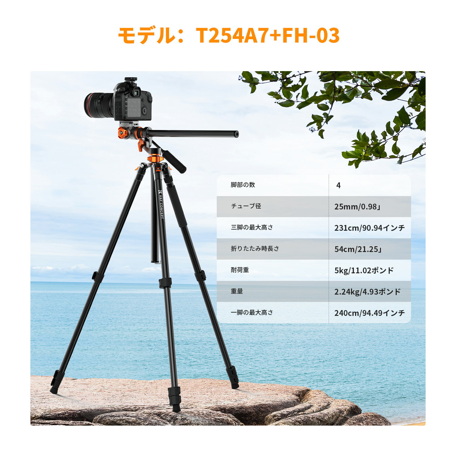商品詳細 おすすめポイント スムーズなダンピング調整:フルード雲台付き三脚は、スムーズなダンピング調整により、俯瞰撮影とパノラマ撮影の両方が可能で、さまざまな撮影状況に対応します。 新設計の水平センターポール:三脚のセンターポールは水平方向に360°、垂直方向に120°回転可能。 安定したサポートとフレキシブルな撮影アングル:雲台は最大5kgの耐荷重を持ち、油圧ダンピングテクノロジーを採用しているため、雲台がスムーズに動き、 安定した均一な撮影が可能です。雲台は+90°/-90°のチルト撮影と360°のパノラマ撮影に対応し、マルチアングル撮影が可能です。 最大231cmまで高さ調節可能:ビデオ三脚の最大高さは231cmまでですが、折りたたみサイズはわずか54cmです。 センターポールのチューブ径を拡大:センターポールのチューブ径を28mmに拡大し、センターポールを水平に置いた際の安定性を高め、撮影時の手ブレを軽減します。 360°パノラマ撮影:雲台根元の水平360度スケールにより、超広角レンズで撮影した写真よりも印象的なパノラマ写真が簡単に撮影できます。 取り外し可能な一脚:三脚は一脚に変身し、センターポールを追加して240cmまで上げることができます。 注意事項 ※ご利用のパソコンなどの解像度の影響で、色差がある可能性があり、予めご了承くださいませ。 メーカー希望小売価格はメーカーサイトに基づいて掲載しています メーカー希望小売価格はメーカーサイトに基づいて掲載しています メーカー希望小売価格はメーカーサイトに基づいて掲載しています