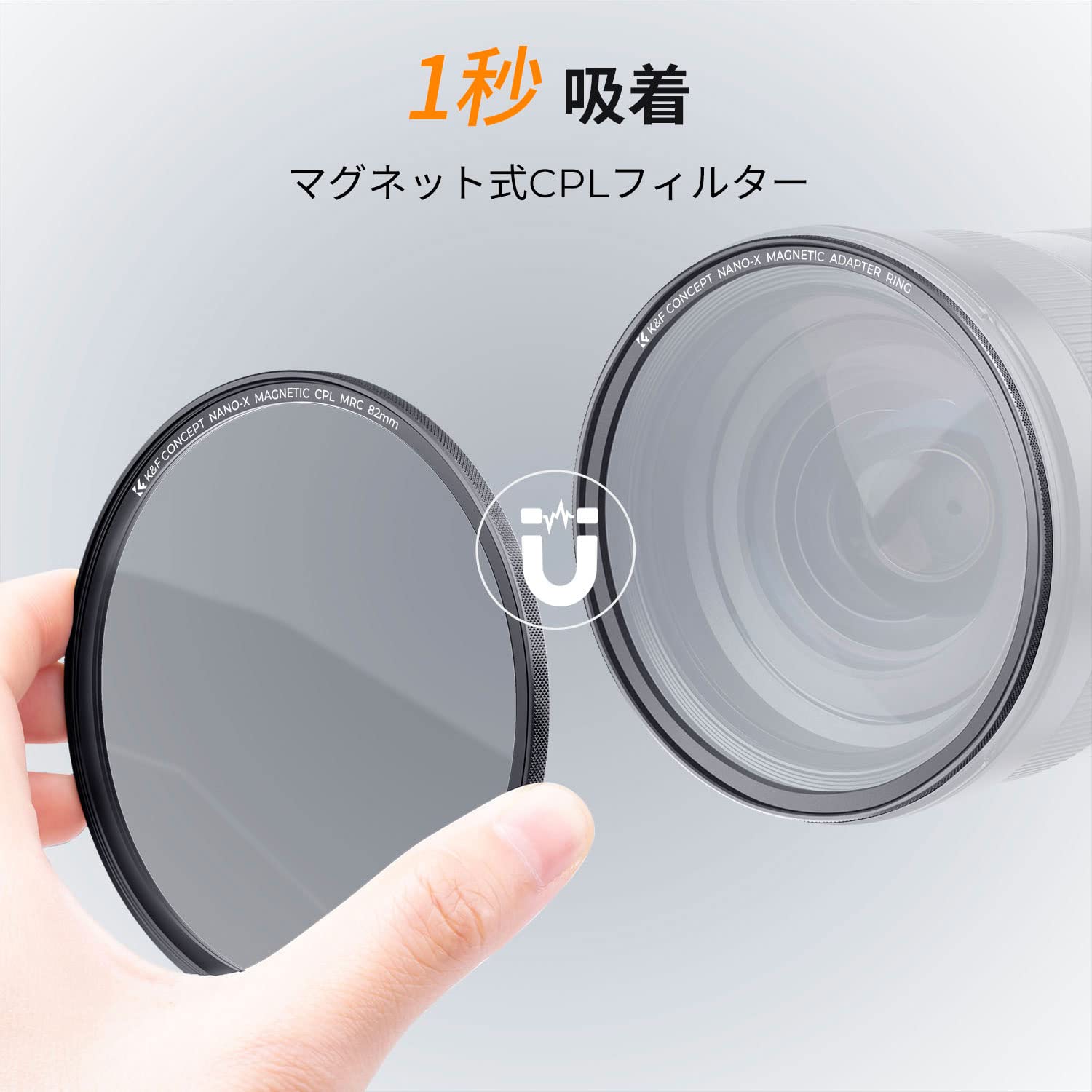 Max10%OFF配布中!!49-82mm マグネットC-PLフィルター+マグネットアダプターリング 磁気吸着 装着便利 円偏光 色彩コントラスト 反射調整用 28層ナノコーティング 超薄型 撥水防汚キズ防止 風景撮影最適 (NANO-Xシリーズ)