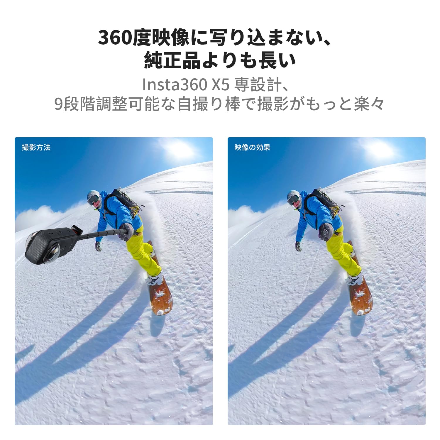 Max10%OFF配布中!! k&f concept Insta360 X5用 自撮り棒 磁気式 クイックリリース 180度回転収納可能 アルミ合金製 9段伸縮 (最大89cm) レンズ保護カバー付き 底部1/4ネジ対応 軽量 コンパクト
