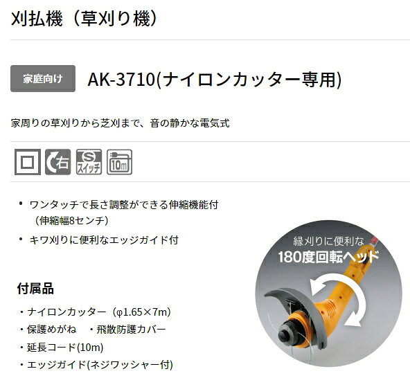 京セラ(旧リョービ) AC100V 電気式 刈払機 AK-3710 [ナイロンカッター専用/刈幅250mm]