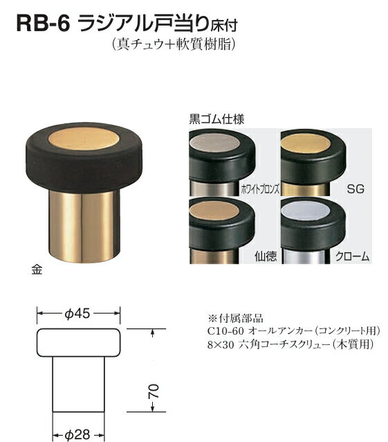 シロクマ 戸当たり ラジアル戸当り床付(黒ゴム仕様) RB-6 サイズ70【1個】【※カタログ共通画像使用のため、商品画像カラーにはご注意ください!!】