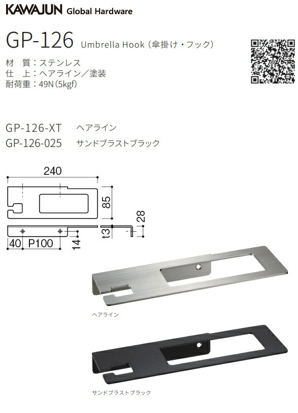 KAWAJUN(カワジュン) 傘掛け・フック GP-126-025(サンドブラストブラック)