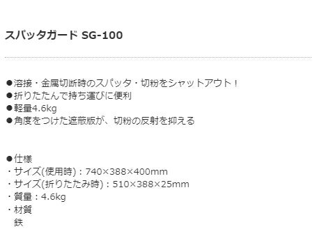 DENSAN(デンサン/ジェフコム) 火花飛散防止具 スパッタガード SG-100 [サイズ(使用時):740×388×400mm]