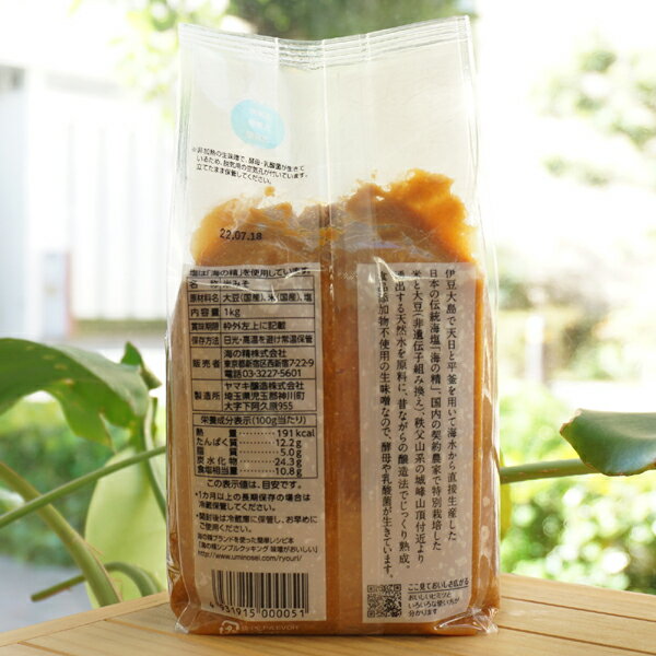 ■国産特別栽培大豆・玄米使用 ■風味よく甘みがある ■天然醸造法 ■酒精不使用 ■神泉水・海の精使用 ■1年以上長期熟成 ■生味噌(非加熱) ■淡赤茶色 ■塩分約11% 【原料名】特別栽培大豆(北海道産)、特別栽培米(長野産)、食塩(海の精) 【内容量】1kg