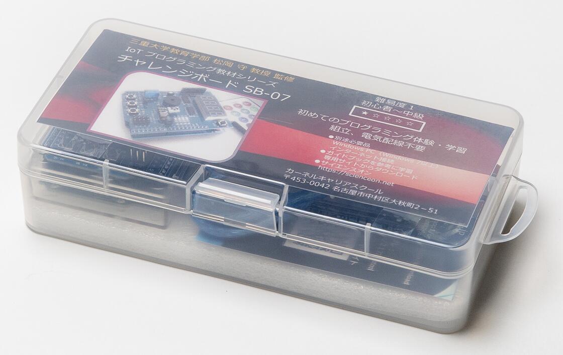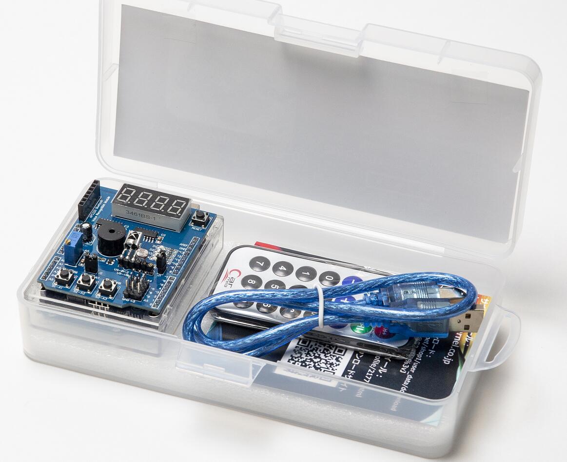 自分で用意するもの 1.WindowsPC 2.インターネット接続環境 【プログラミング例】*一部サンプルプログラムで提供されています。 初心者レベル ・本教材のサンプルプログラムを体験した後は、オリジナルなプログラムの作成にチャレンジしましょう ・はじめは、プログラムを改造するところから始めます。一箇所ずつの改造からはじめてみましょう ・LEDの点滅制御 ・数字をLEDで表示 ・ボタンスイッチでLEDの点灯制御 ・ボタンスイッチでブザー制御 初級レベル ・4つのLEDが流れるように点滅 ・ランダムな数字をLEDで表示 ・明るさに応じて、音階(ド、レ、ミ…..)が鳴る ・スイッチボタンで、音階が鳴る。同時にその周波数がLEDに数値表示 中級レベル ・リモコンの数字ボタンに対応し、LEDに数値表示 ・ルーレットゲーム 導入実績 名古屋少年少女発明クラブの授業に使用されています。 ※ご利用の注意事項について、技術的なサポートには対応しませんので、お客様の問合せに対応できない場合があります 改良等のため、仕様は予告なく変更されることがあります。・組み立て不要・電気配線不要で、すぐに始められます ・はじめてのプログラミング体験・学習に最適な教材です ・付属教材を使い、プログラミングでボード搭載のセンサーやLEDを制御しながら学習できます ・名古屋少年少女発明クラブのマイコンボードプログラミング教室で採用されています ・Amazonでも高評価を獲得しています ・安心の自社開発製品です