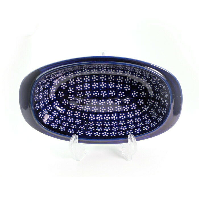 程よい1人前のグラタン皿 オーバルなフォルムがスタイリッシュなザクワディ社製のオーブン用の器です。両縁の部分に1cm程度の羽があり、熱くなったお皿をミトンで運ぶときにも抱えやすくなっています。丈夫で適度な深さを持ち、使い勝手も抜群。オーブン料理以外でも、メロン、スイカ、ぶどうなどをサーブするときにも活躍します。 濃い藍色が美しい、和の食卓にも非常に馴染む絵柄 日本では大変人気のあるザクワディ社のハイスタンダード柄。濃い藍色が料理を引き立てる効果は抜群です。日本古来の文様紋の梅鉢にも通じる花柄の図案も、和の食卓には非常に馴染む要素となっています。 商品詳細 大きさ 12cm×23cm 高さ 5.4cm 容量(満水時) 約0.5L Zakłady Ceramiczne "BOLESŁAWIEC"(ザクワディ)社製