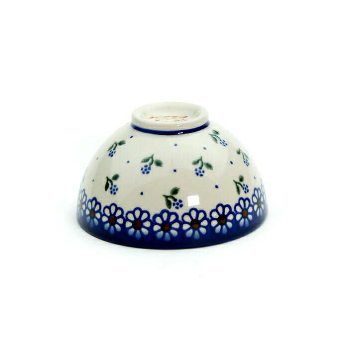 小さな手にも馴染み易いポーランド製の「ご飯茶碗」 日本からのリクエストに応え、VENA社が作ってくれたご飯茶碗。サイズは大小あって、これは小さな方です。小ぶりのご飯茶碗をお探しの方やお子様に丁度良く、手にも馴染み易いコロンとした愛らしいフォルムをしています。通常は見込み部分まで絵付けされていることが多いポーリッシュポタリーですが、ご飯茶碗ゆえにあえて見込み部分は絵付けを省いてあります。それでもユニーク柄以上のランクには、マグ同様にさりげなく内側にもちょっとだけワンポイントが施されており、VENA社らしいお洒落な雰囲気は健在です。 清楚で愛らしい雰囲気のデザイン 縁取りに使われている8つの花弁の花柄スタンプは、ポーリッシュポタリーのスタンプの中でも最もポピュラーなもののひとつ。クリーム色の余白の部分には、青い小花とドットがあしらわれています。比較的シンプルな構成ながら、バランスの取れたデザインであり、清楚な愛らしい雰囲気に包まれています。 商品詳細 直径 10.5cm 高さ 5.7cm 容量(満水時) 0.25L Ceramika Artystyczna VENA(ヴェナ)社製