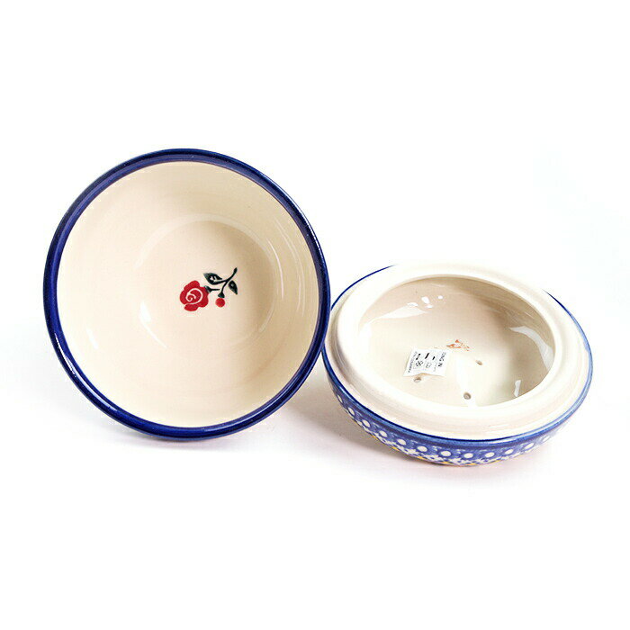 焼きりんごが作れる容器です! くり抜いてシュガーバターを詰めたりんごを入れて、オーブンに入れると焼りんごが出来る『りんごポット』!どこに置いても目を引く可愛らしいその姿は、ポーリッシュポタリー屈指の人気者です。食器棚にあるだけでも目を楽しませてくれます。コーヒーテーブルに置いてキャンディボックスとしてご利用の方も多く、ユニークで愛らしいフォルムは、贈り物にもぴったりです。 *ご購入の際には、りんごポットで作る焼りんごの作り方のリーフレットを同封しています。 刺繍のパターンを思わせるデザイン 方眼紙から起こしたようなスタンプワークと、バラをミニマムに意匠化することによって構成されたデザインは、刺繍の図案を思わせます。4色のソリッドカラーのみの色使いは、楽しくすっきりとした印象です。 商品詳細 直径 12.5cm 高さ 12.5cm 容量(満水時) 約0.55L Ceramika Artystyczna VENA(ヴェナ)社製