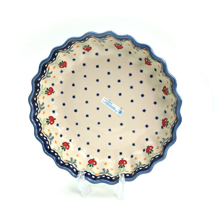 オーブンウェアとしてお洒落な盛皿として使えます 側面が波打っているスフレディッシュという名前の食器です。焼きっぱなしのケーキ、パイ、キッシュや、グラタンやドリアなどを焼いたりできます。深さもあるので、ボウルのようにサラダやおかずを盛り付けても大丈夫。厚ぼったいので重みもありますが、ハンドメイドならではの温かみを存分に感じられるWIZAらしいフォルムです。 ケーキ、タルト、ムース、キッシュ、プディングなどを作ってそのままテーブルへ運ぶのもおすすめ。とても素敵なケーキ型にもなり、多様な用途を持つ食器の一つです。 かぶのように見えますが、これ「りんご」なんです! とても可愛い赤いりんごともみの木の枝がモティーフとなっています。日本人からみるとこれは赤かぶに見えますが、ポーランド人にとっては明らかに「りんご」にしか見えないそうです。星のスタンプや雪の結晶も使われたクリスマスムードの楽しい絵柄です。 商品詳細 直径 22cm 深さ 約5.5cm 高さ 約6cm 容量(満水時) 約1.3L(満水時) Ceramika Artystyczna WIZA(ヴィザ)社製