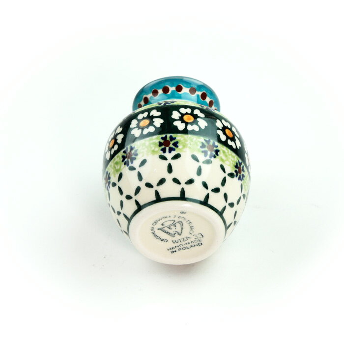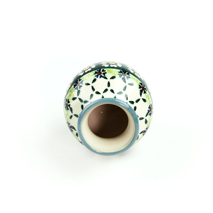 テーブル使いにもしっくりくる高さを抑えたフラワーベース ぽってりとした愛らしいフォルムは、実用的で安定感のある機能性も持ち合わせています。特別でない日常に、生花やグリーンを活けるための小さな花瓶。食事時や団らんの時間に彩を加えてくれる、さりげなくお洒落なアイテムです。 ヴィザ社を代表するカモミール柄 ヴィザ社のデザイナーAdam Jop(アダム・ヨップ)氏によって作られたポーリッシュポタリーの有名な柄です。青系が多いポーリッシュポタリーの中ではちょっと珍しいグリーン系で、「カモミール」がモティーフとなっており、男女を問わない人気を持っています。 商品詳細 直径(一番膨らんだ部分) 約7.5cm 高さ 約8.5cm Ceramika Artystyczna WIZA(ヴィザ)