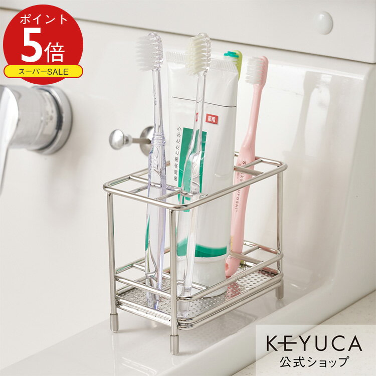 【KEYUCA公式店】ケユカ カイラ ハブラシスタンド ファミリー[歯ブラシスタンド シンプル モダン ギフト 歯ブラシたて 歯ブラシホルダー 四角 6本 滑り止め付き スクエア型 ステンレス ハブラシ おしゃれな 歯ブラシ スタンド 歯磨き粉 衛生的 コンパクト 滑りにくい]