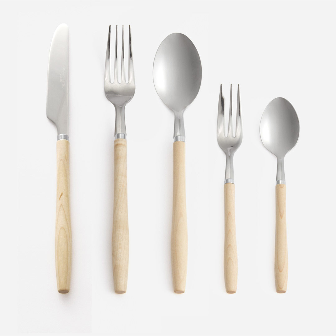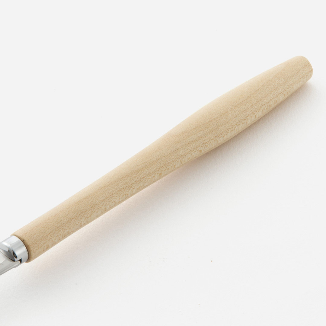 柄が細くエレガントな形状が特徴的なザパルシリーズです。クールで落ち着いた印象のブラックと、天然木の風合いが楽しめるナチュラルの2色展開です。スタイリッシュなデザインで、普段使いはもちろん、おもてなしにもぴったりなカトラリーです。食器洗い乾燥機使用不可漬け置き不可サイズ:W16.5×D1.7×H20cmカラー:メープル材質:天然木 (メープル)表面処理:ウレタン塗装生産国:日本