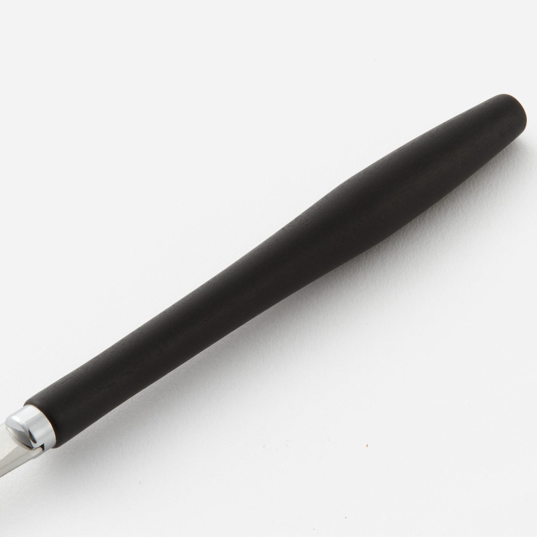 柄が細くエレガントな形状が特徴的なザパルシリーズです。クールで落ち着いた印象のブラックと、天然木の風合いが楽しめるナチュラルの2色展開です。スタイリッシュなデザインで、普段使いはもちろん、おもてなしにもぴったりなカトラリーです。食器洗い乾燥機使用不可漬け置き不可サイズ:W22×D1.3×H1.8cmカラー:ブラック材質:天然木 (メープル)表面処理:ウレタン塗装生産国:日本