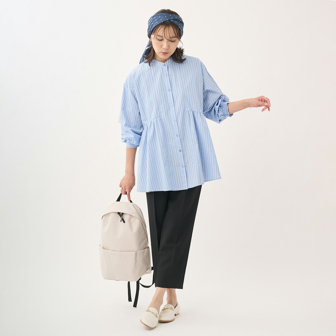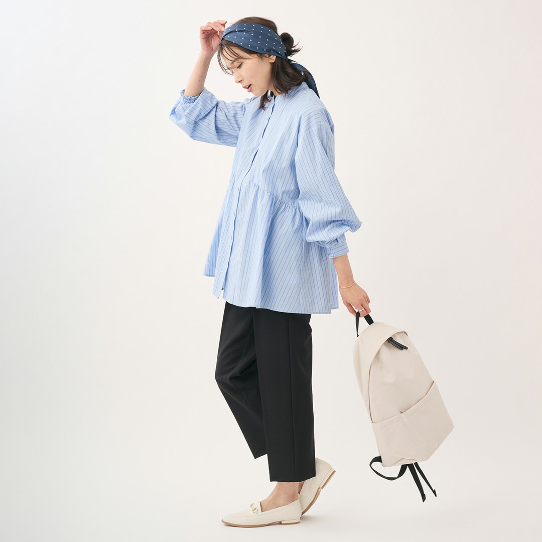 ●POINT・防汚撥水機能で雨や水を弾き、汚れに強くいつでもきれい◎・1枚でもレイヤードしてもきまるペプラムデザインシャツブラウス・見頃は縦に、ウエストも切り替えて大人が似合うデザインに・腰周りをカバーできる着丈・パンツとのスタイリングにおすすめ・綿よりもシワになりにくい生地・サステナブルな素材のリサイクルポリエステルを使用し、環境に優しい●機能撥水、防汚、ウォッシャブル、環境にやさしいカタログモデル身長:168cmサイズ詳細モデル身長:154cm-------------------透け感:ホワイトのみややあり厚さ:普通伸縮性:ややあり裏地:なし光沢感:なし-------------------※撮影画像は、光の当たり具合や撮影環境により色味が違って見える場合がございます。また、ご覧になっているデバイスやモニター環境によって、実際の色味と多少異なって見える場合がございますので予めご了承をお願いいたします。●スタッフ着用レビュー154cm/FREEサイズ着用おしりがすっぽり隠れる丈感でおしゃれしながら体型カバーが叶います。ペプラムデザインですが、ベストなどのレイヤードで一目引くスタイリングも楽しめます!ケユカアパレルは、ケアにも、着心地にも、コーディネートにもイージーな機能を。着るだけで気持ちをリセットできて、自然体になれるデザインに。明日も心地良いものになるように、日々の暮らしを支える服です。サイズ:フリーサイズ/肩幅=53cm、身幅=111cm、着丈=76cm、袖丈=49cm、裾巾=207cmサイズの詳細はこちらカラー:ホワイト、ピンク(ストライプ)、ネイビー、サックス(ストライプ)素材:【ホワイト・ネイビー】ポリエステル90%、綿10%【ピンク・サックス】ポリエステル74%、綿26%生産国:中国【お洗濯上のご注意】洗濯の際、ネットを使用してください。アイロン掛けの際は当て布をして下さい。ゴム部分にアイロンはお避けください。はっ水、防汚加工は永久的なものではありません。着用や洗濯を繰り返すことにより効果は徐々に低下します。濃色品は他の物に色移りする恐れがありますので、他の物と分けて洗ってください。濃色製品は使用中の摩擦や濡れた状態での接触で色移りすることがあります。洗濯絵表示の詳細はこちら
