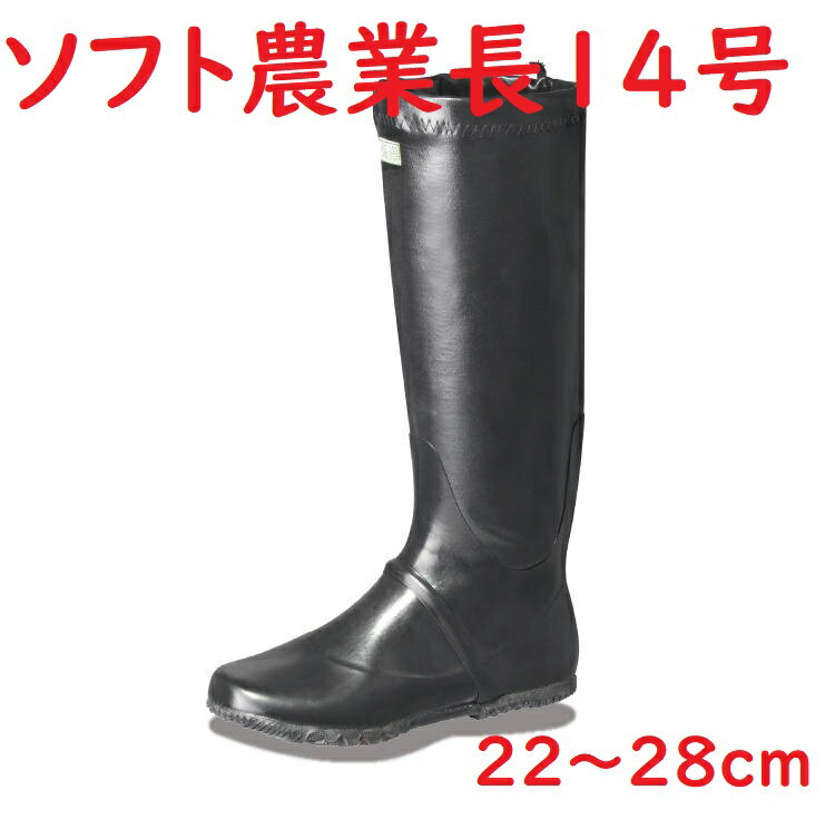 送料無料 ソフト農業長 14号 ブラック 先丸 輪ゴム付 22〜28cm 弘進ゴム 田植長靴 田植え作業 農作業 草刈り 土木建築 河川工事 その他水際の作業など