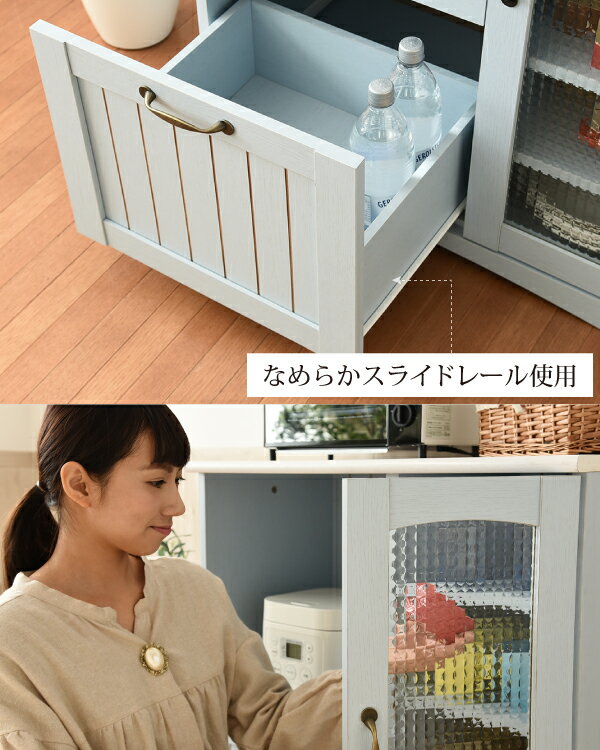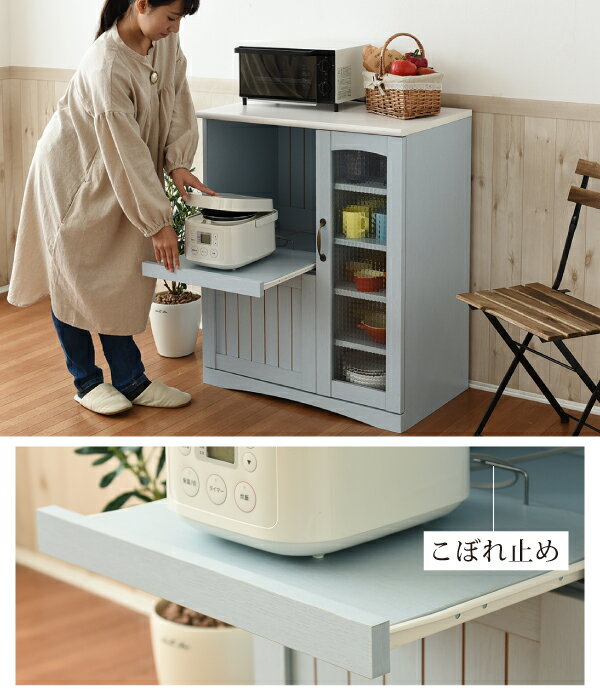 フレンチカントリー キッチンカウンター レンジ台 幅 75 高さ 90 スライド棚 付 コンセント 付 キッチン収納 収納 棚 ガラス扉 姫 シャビーシック カントリー フレンチアンティーク フレンチインテリア