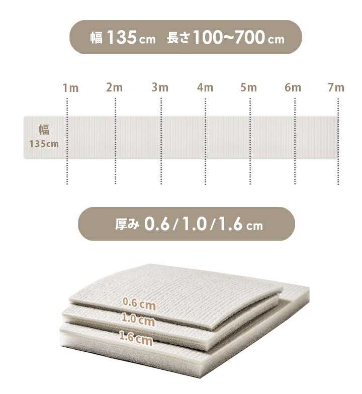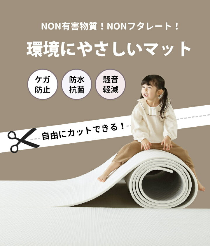 クッションマット フリーカット マット プレイマット ベビー 自分でカットできる マット フローリング に 敷く マット ベビーマット フリーカットマット ロールマット 幅135cm 100cm〜700cm 厚み0.6cm〜1.6cm フロアマット PVC 北欧 防音 キッズ 子供 厚手 防水 保育園 幼稚園 床暖対応お部屋に合わせてサイズをカット!クッションフロアマットで簡単DIY お子様はもちろん高齢者やペットの足腰の負担軽減に カットマットPVCロールマット 自分で自由にカットできる クッションマット プレイマット フリーカット PVCロールマット 100〜700cm×135cm 仕様 ・ヒロミの八王子リホームで使用されました ・お部屋の形に合わせて自分でカット ・柱などのある凸凹とした場所にもピッタリフィットで見た目もスッキリ! ・生活防水でお手入れや掃除も楽々 ・傷がつきにくく破れにくい特殊なフィルムコーティング ・防音効果もあるのでリビングや子供部屋に敷き詰めて ・転倒での衝撃を吸収するのでケガ防止はもちろん床保護にもおすすめ ・床暖房のお宅でも使用可能 ・コタツの下に敷くこともできます ・有害物質未検出。厳しい国際基準の安全検査に合格した、環境に優しく人体に無害な非フタル酸(ノンフタル酸)系PVCです ・当店オリジナルデザインのマットです サイズ 100cm×135cm 200cm×135cm 300cm×135cm 400cm×135cm 500cm×135cm 600cm×135cm 700cm×135cm 厚み 0.6cm/1.0cm/1.6cm ※サイズにつきましては面積±2〜3%、厚み±2mmの誤差は許容範囲内として販売しています 重量 サイズ :100/200/300/400/500/600/700(cm) 厚み0.6cm:約2.8/4.5/6.3/8.2/9.9/11.7/13.9(kg) 厚み1.0cm:約3.0/5.1/7.1/9.6/11.6/13.6/16.0(kg) 厚み1.6cm:約4.0/6.0/8.0/10.5/12.6/14.9/17.0(kg) (パッケージ含む) 素材 PVC,PE カラー アイボリー/アッシュグレー/クリームベージュ/ライトグレー/マーブル 生産国 韓国 ※国内在庫からお届け 注意点 ◆ご購入前 ・ご注文から7日以上先のお届け日をご指定の場合、在庫確保及び発送手配の関係上その後のキャンセルはお受けできかねます。あらかじめご了承ください。・お客様のご都合によるサイズやカラーのご変更につきましては、往復の送料および返品手数料をご負担いただいております。 ・厚み0.6cmと1.0cmのΔLH-3検査は実施しておりません。 ・商品を複数回または複数個ご購入された場合、生産ロットや入荷時期等の理由により、色、質感、加工、柄パターン等に差異がある場合がございますのでご了承ください。 商品差異が気になる場合はご購入前にお問い合わせください。可能な限りご希望に添えるよう努力いたします。 ・お買い物ガイドをお読みのうえご購入ください ・サイズ表をお確かめの上ご購入ください。 ・ご利用のデバイスやPCモニターのカラー設定等により若干異なった色に見える場合がございますが、何卒ご了承ください。 ◆ご購入後 ・段ボールやビニール袋は返品・交換・返送の際に必要になります。これらを破棄されますと、返品をお断りさせていただく場合がございますので、お届けした商品の中身の確認が済むまでは念のため10日間ほど保管してください。 ※段ボールやビニール等袋を破棄されますと、不良品であっても対応をお受けできなくなる場合がありますのでご注意ください。 ・商品が届きましたら、お早めに商品のご確認をお願いいたします。 ・商品到着後、1週間を過ぎたご返品は基本的にお受けできません。 ・カット後の返品交換はお断りさせていただきます。 ・不良箇所があった場合は拭き取りや修正をする前に撮影し、店舗への連絡時に添付してください。 ・返送いただいた商品に不具合・不足品があった場合は別途費用が発生する場合がございます。 ◆ご使用時の注意事項 ・商品がダンボールギリギリに入っておりますので、開梱の際はお気を付けください。 ・サイズにつきましては面積±3%、厚み±2mmの誤差は許容範囲内として販売しております。 ・マットは巻いた状態で発送致しますので、表面にPVC素材の特性によるしわや巻き癖が発生することがありますが、これによる返品や交換はお受けしておりませんので予めご了承ください。 ・火気に近付けないでください。こたつ、ホットカーペットなど高温になる可能性のある暖房器具と併用する際はマットに熱がこもらないようにご注意ください。 ・本品は床暖房に対応しておりますが、長期間敷いたままだとマットの劣化を早める恐れがあります。定期的にマットを立てて風通しするなどお手入れを行ってください。 ・水や湿気はカビや臭いの原因となりますのですぐに乾いた布で拭いて風通しの良い所で乾燥してください。 ・家具などを長時間置いた場合、マットのくぼみが完全に戻らなくなる場合がございますので ご注意下さい。 ・独特のにおいがする場合がありますが、換気によりにおいはなくなります。 (※においの感じ方には個人差がある為、においに対してのご返品はお受けできません。) ・汚れた場合はウエットティッシュや濡れ布巾などで速やかに拭き、自然乾燥させてください