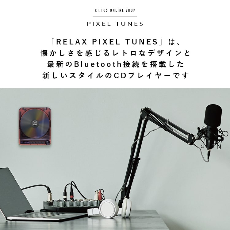 cdプレーヤー おしゃれ bluetooth スピーカー付き ブランド RELAX PIXCEL TUNES 壁掛け 卓上 コンパクト ポータブル 小型 高音質 レトロ 1年間のメーカー保証